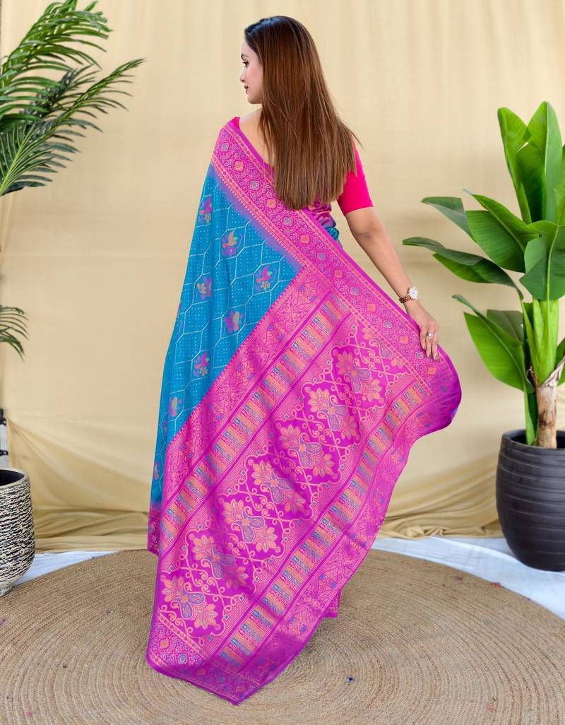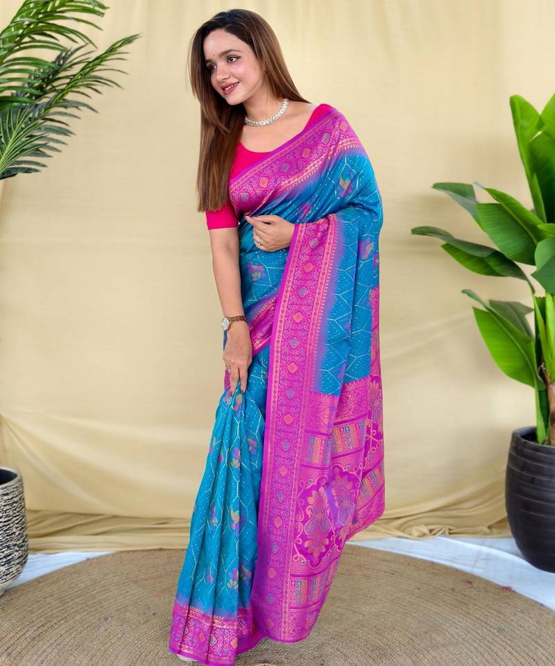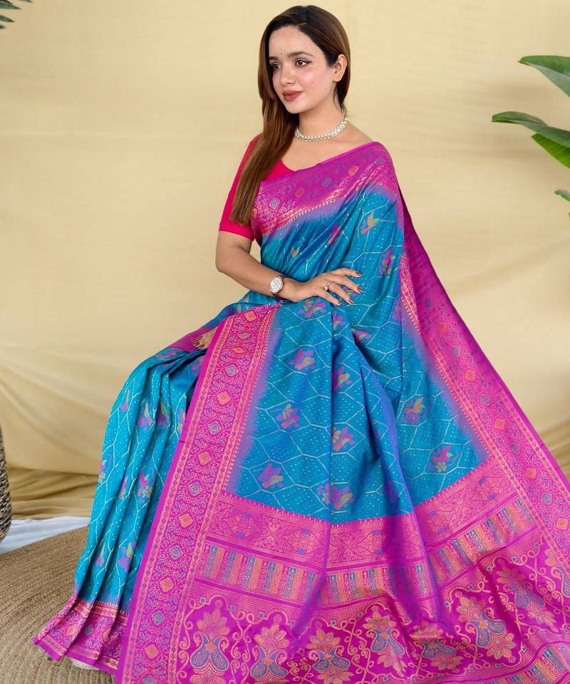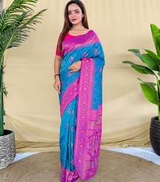 Teal art silk woven saree