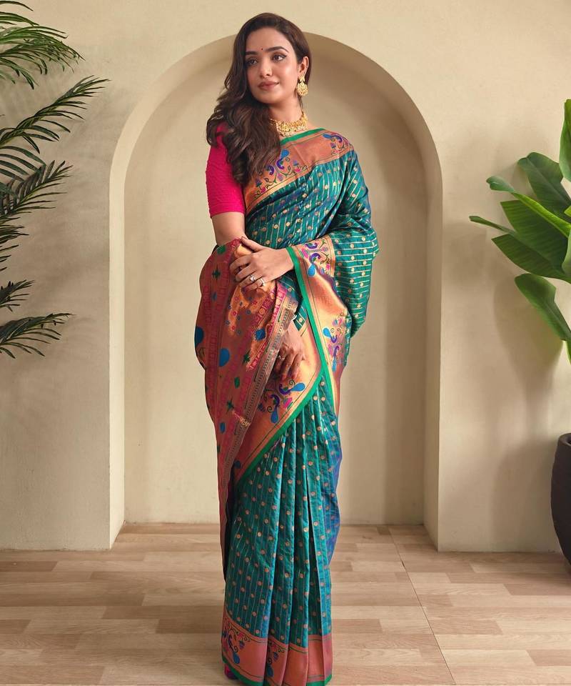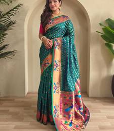 Teal art silk woven saree