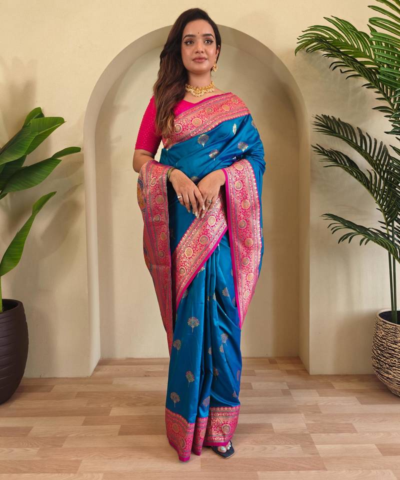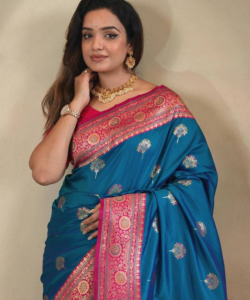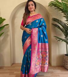 Teal art silk woven saree