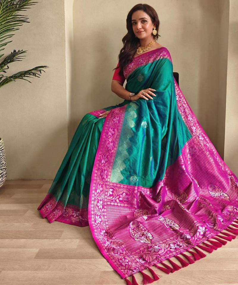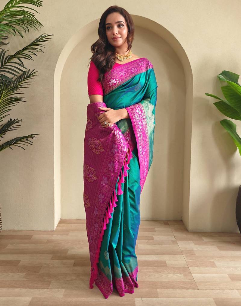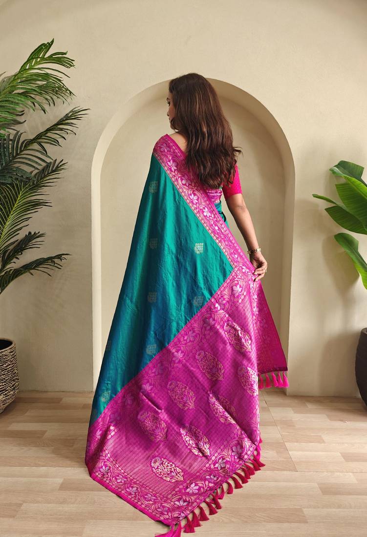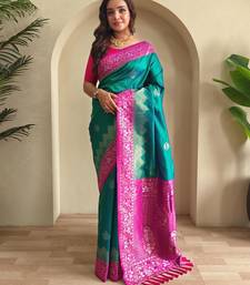 Teal art silk woven saree