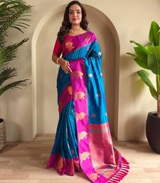 | • | Saree | : | Color- Teal / Fabric- Art Silk |