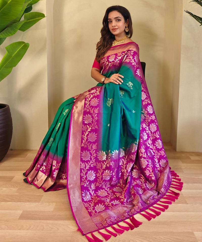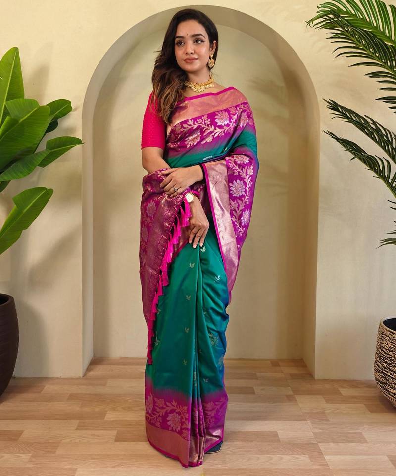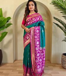 Teal art silk woven saree