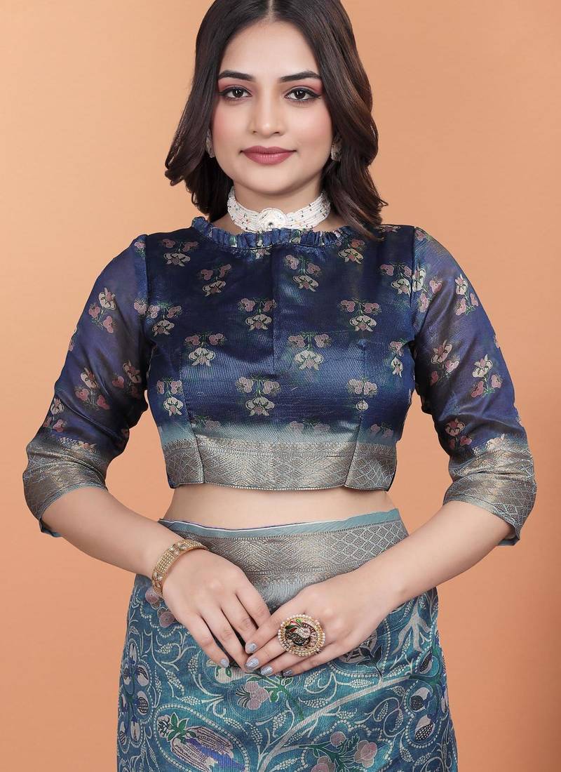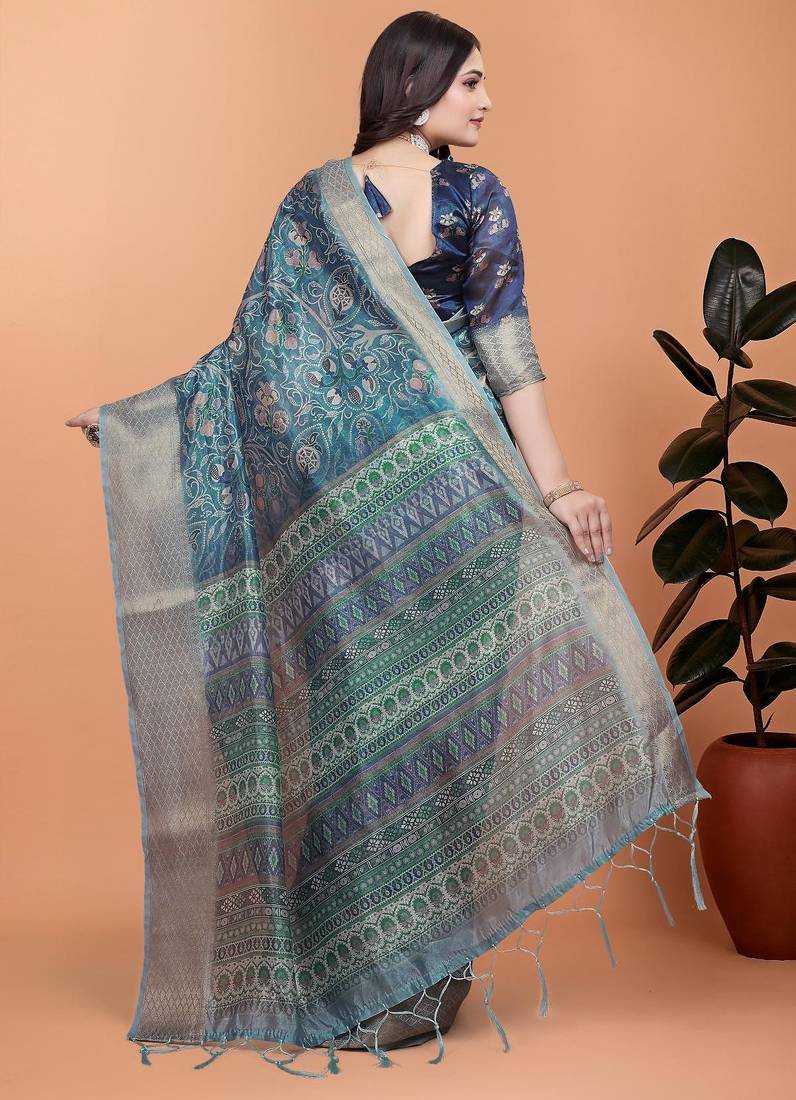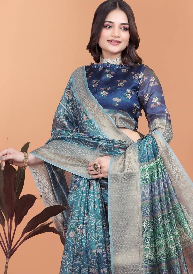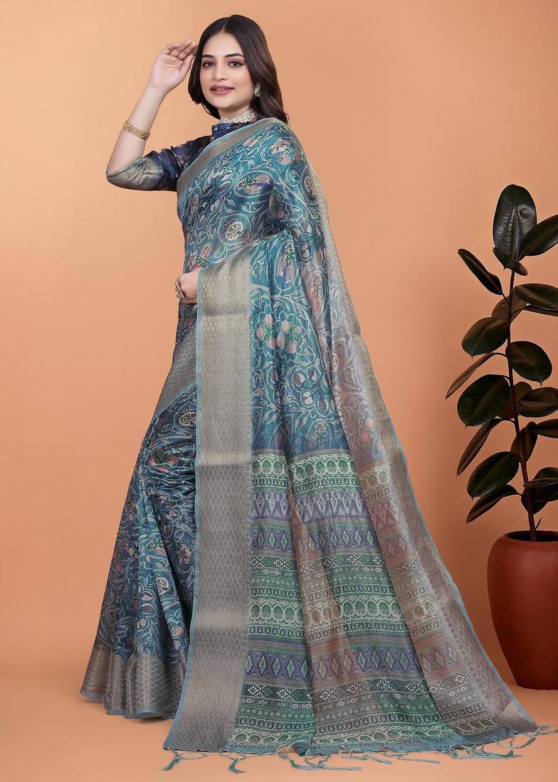 | Product Name | Teal Printed Art Silk Designer Pallu Saree | |