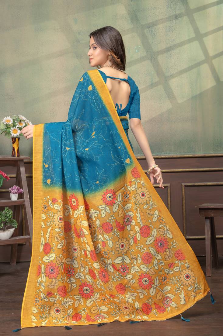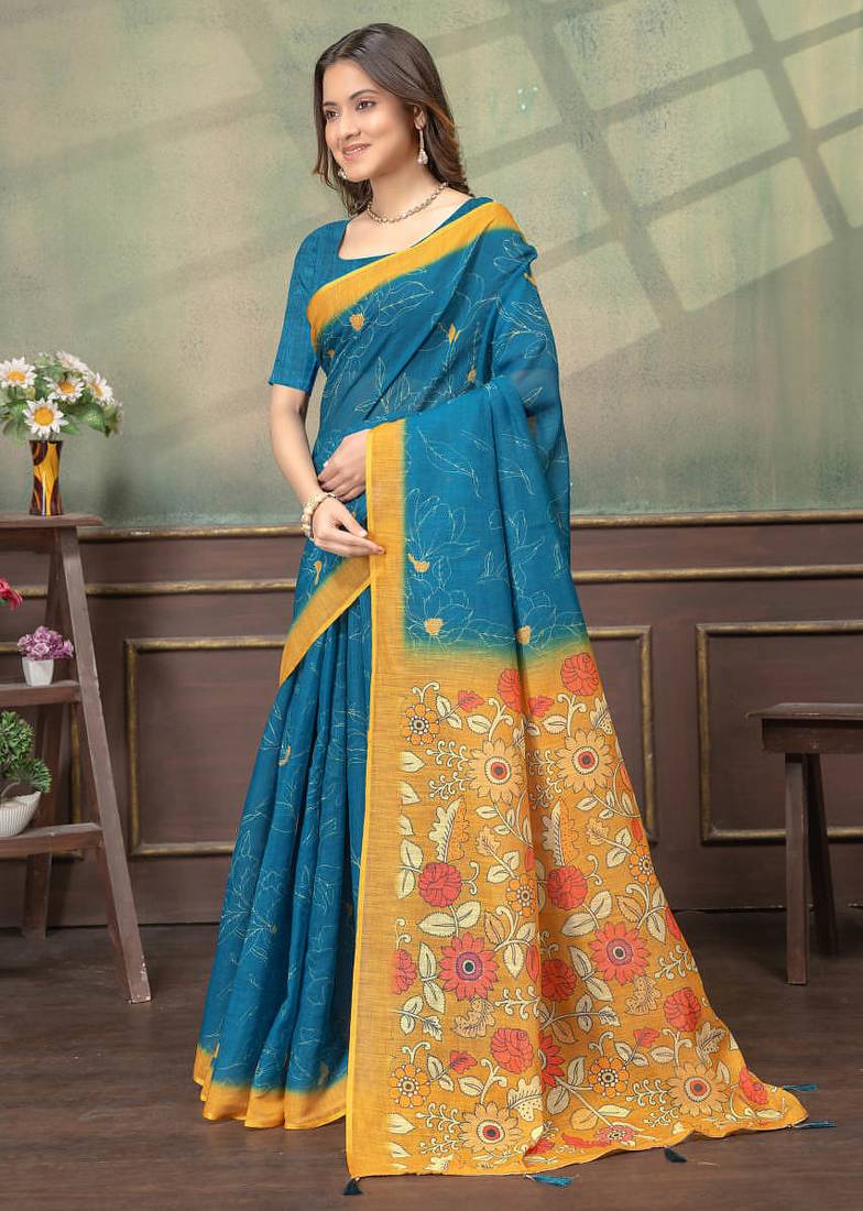 | Product Name | Teal Printed Art Silk Designer Pallu Saree | |