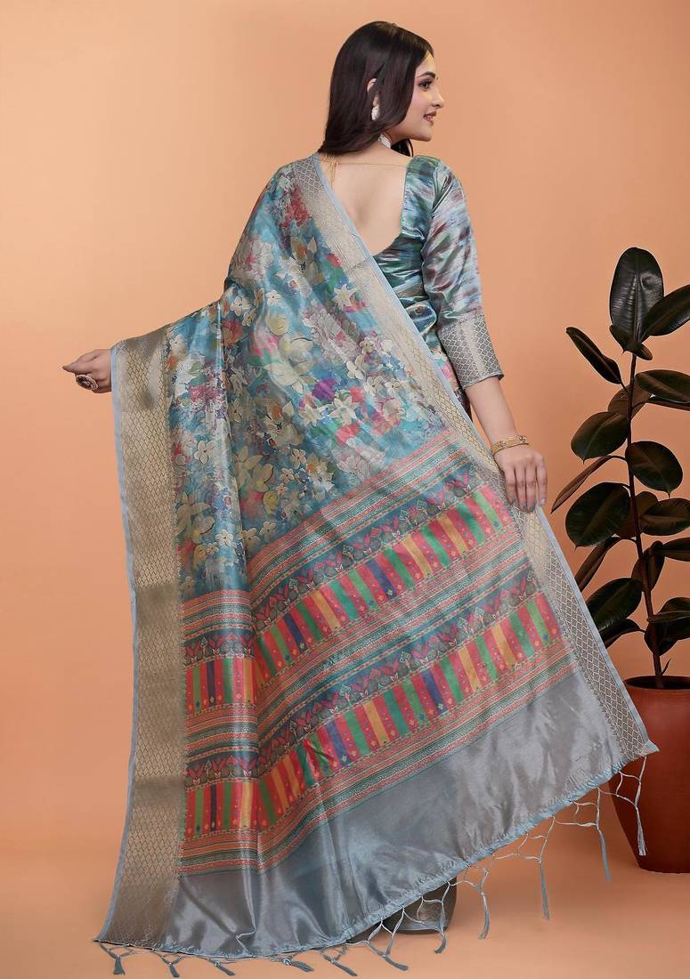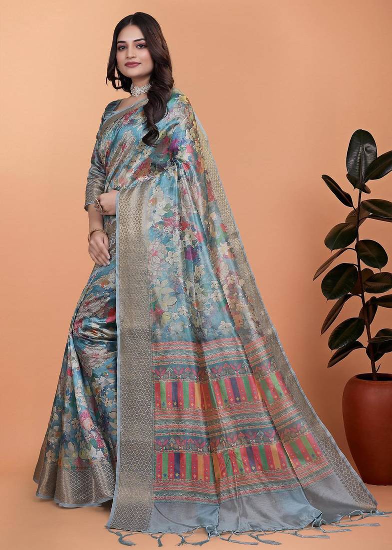 | Product Name | Teal Printed Art Silk Designer Pallu Saree | |
