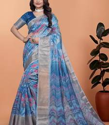 Teal printed art silk designer pallu saree