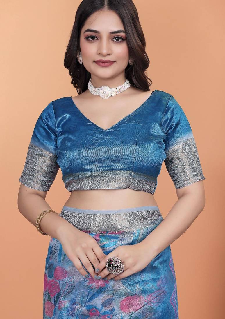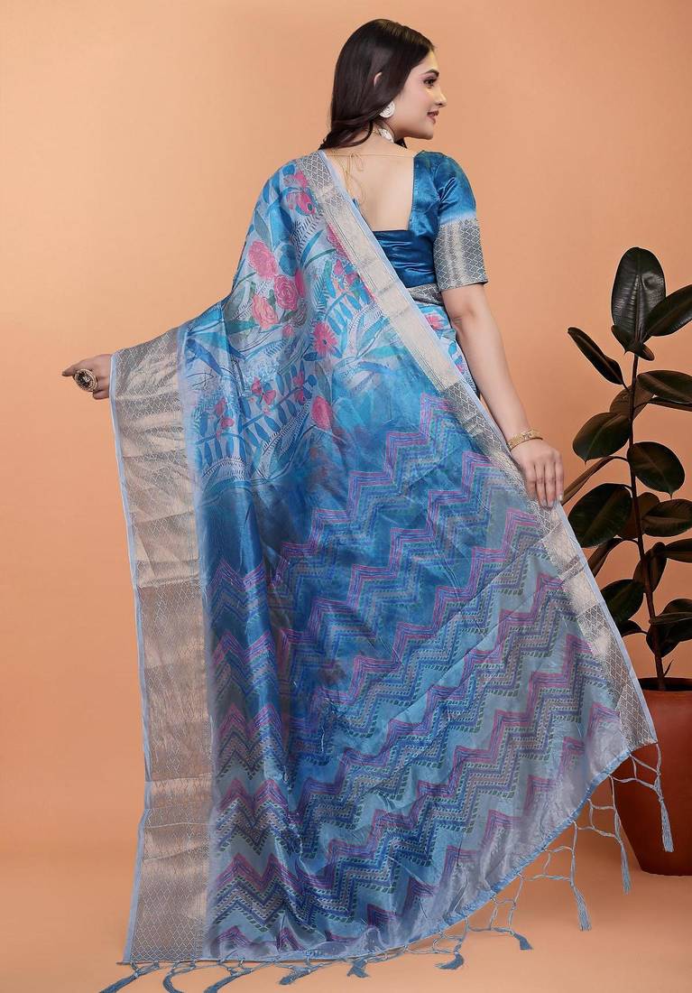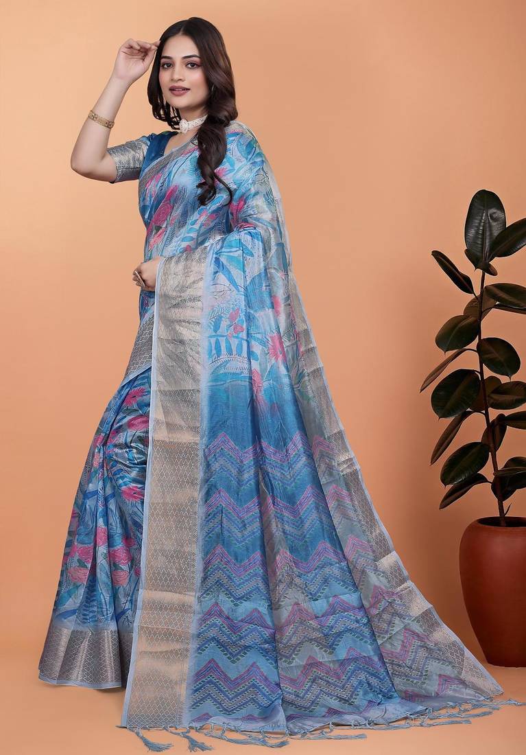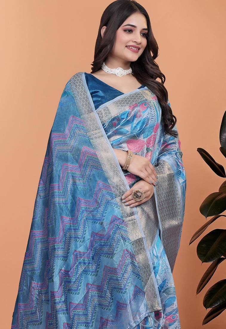 | Product Name | Teal Printed Art Silk Designer Pallu Saree | |