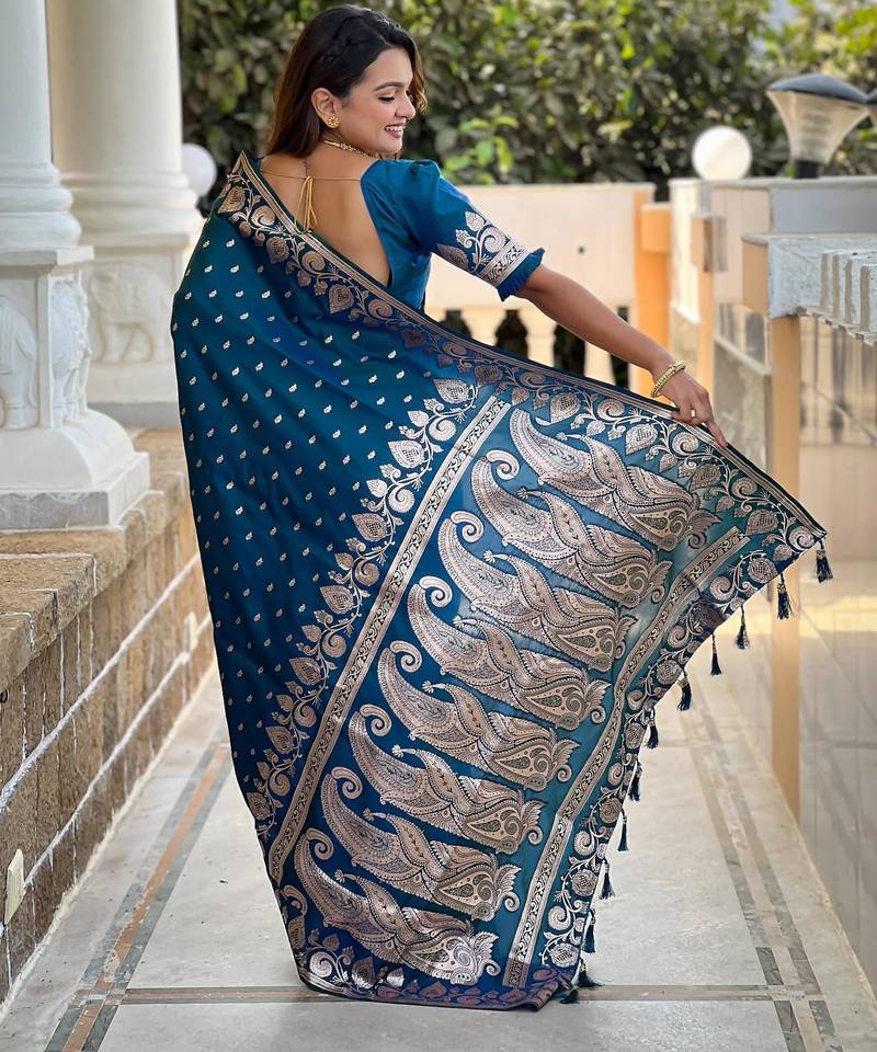 | Product Description | Soft Banarasi Silk Saree With Zari Weaving Design All Over The Saree & Zari Weawing Rich Pallu With Meenakari Weawing Border & Tessels Attached At Pallu End. Blouse : Soft Silk Weawing Blouse Piece |