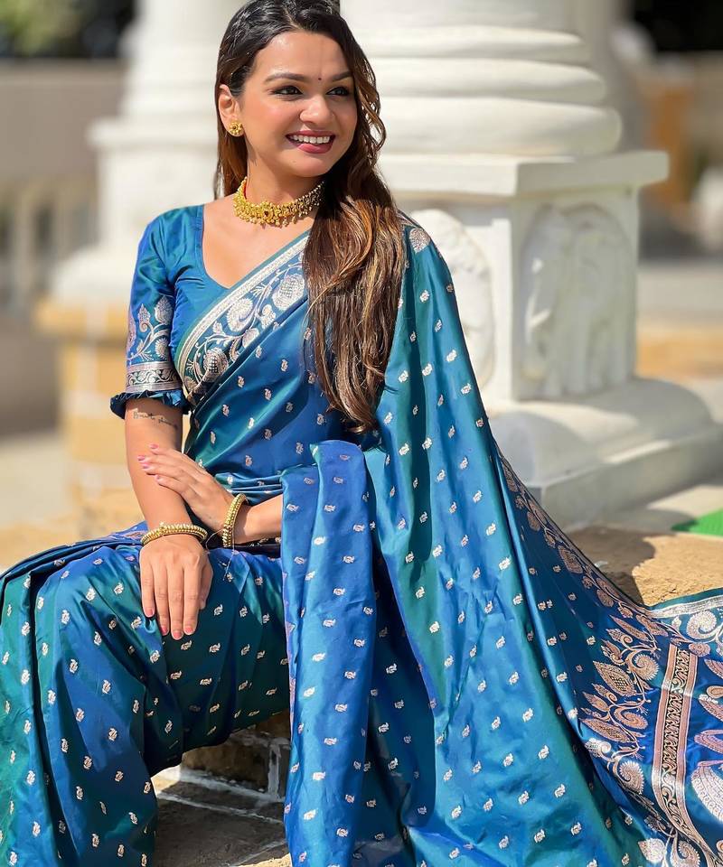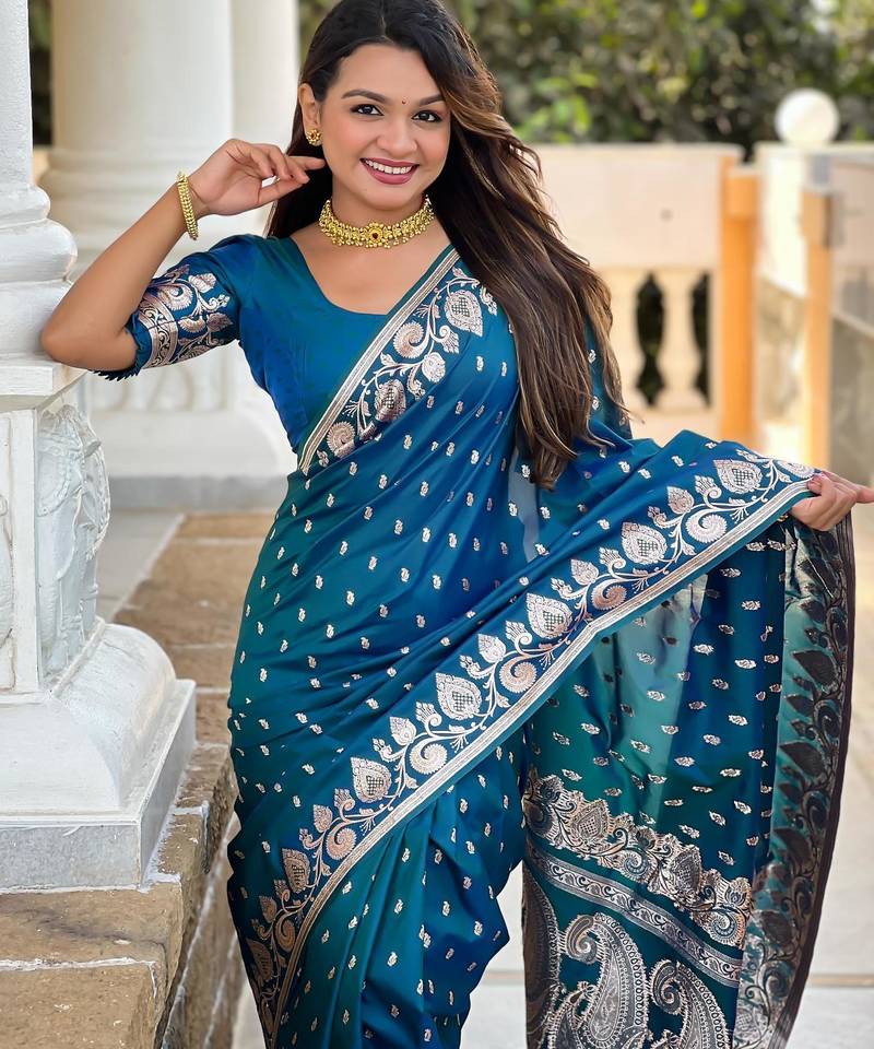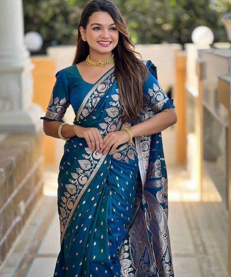 | Product Name | Turquoise Elegant Art Silk Woven Saree With Rich Zari Border | |