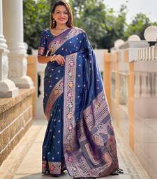 Turquoise elegant art silk woven saree with rich zari border