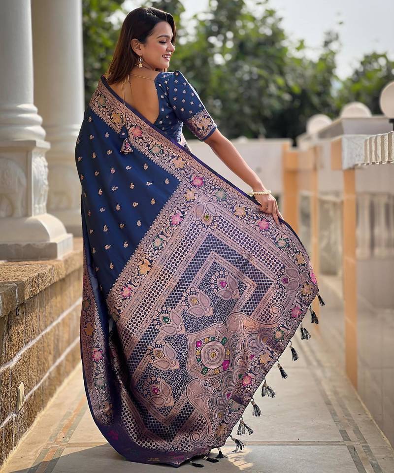 | Product Description | Soft Banarasi Silk Saree With Zari Weaving Meenakari Touchup Design All Over The Saree & Meenakari Weawing Rich Pallu With Meenakari Weawing Border & Tessels Attached At Pallu End. Blouse : Soft Silk Weawing Blouse Piece |