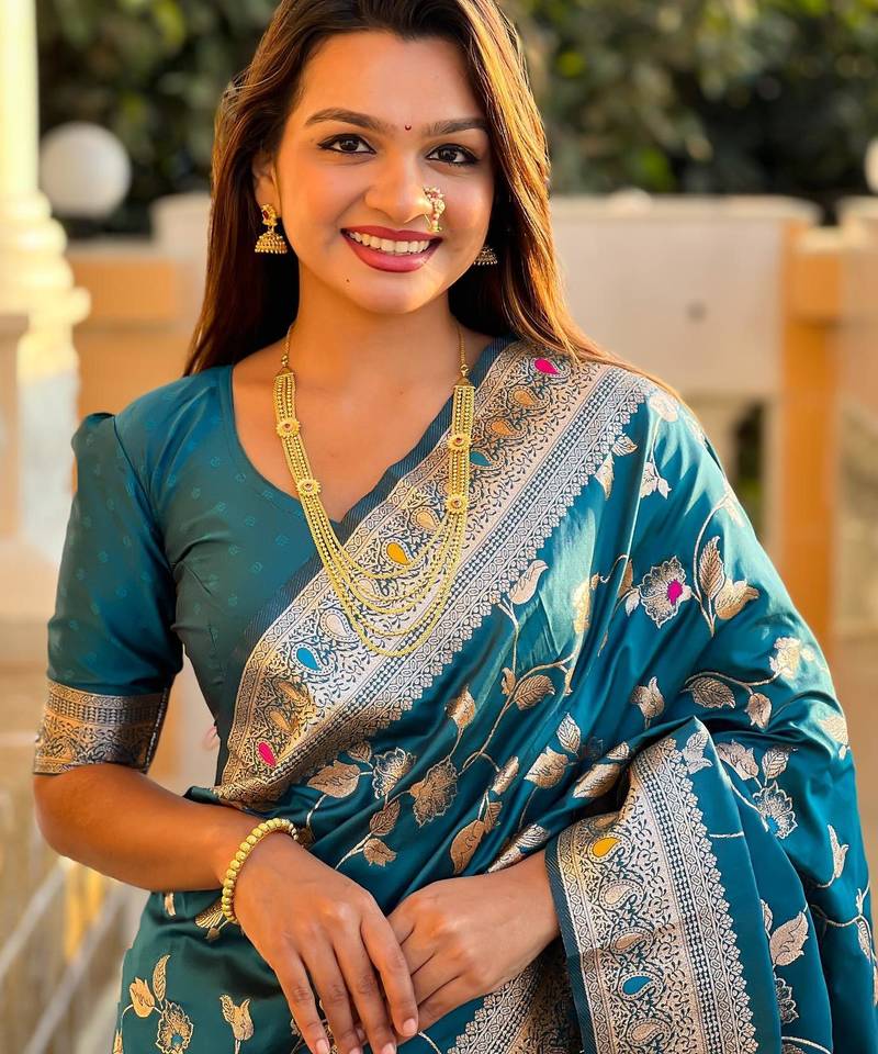 | Product Name | Turquoise Elegant Art Silk Woven Saree With Rich Zari Border | |
