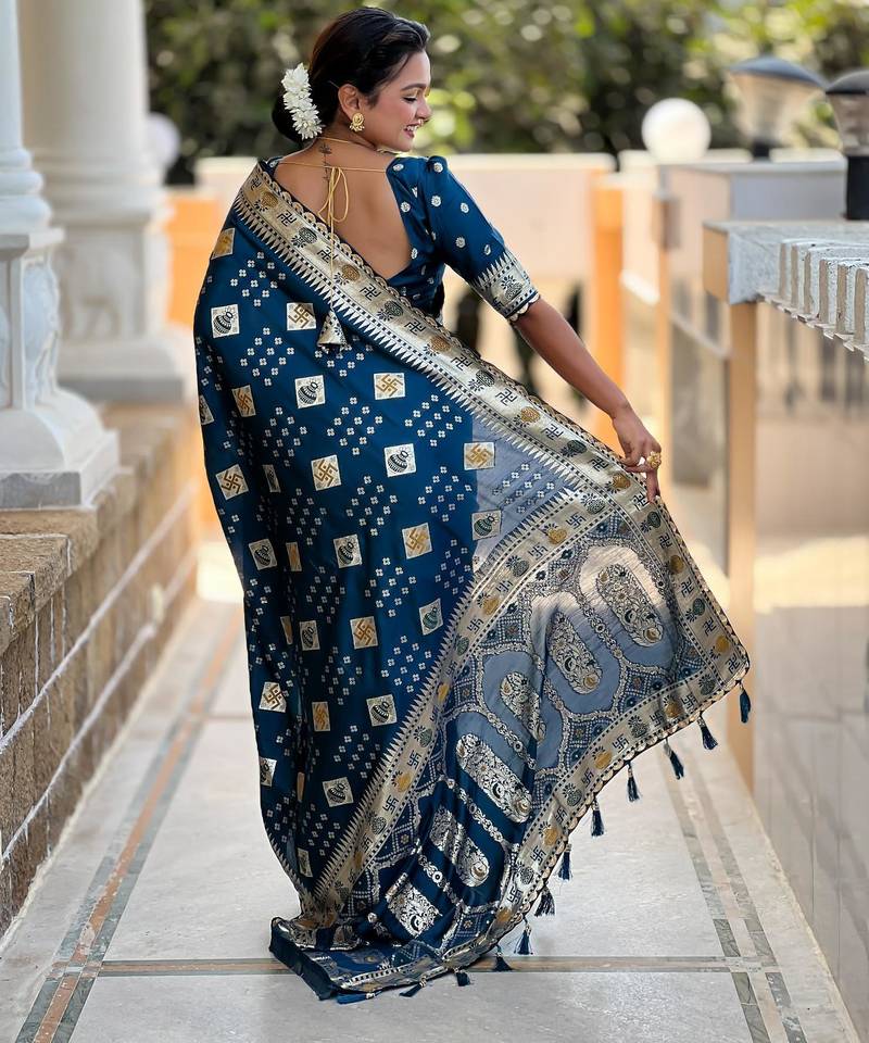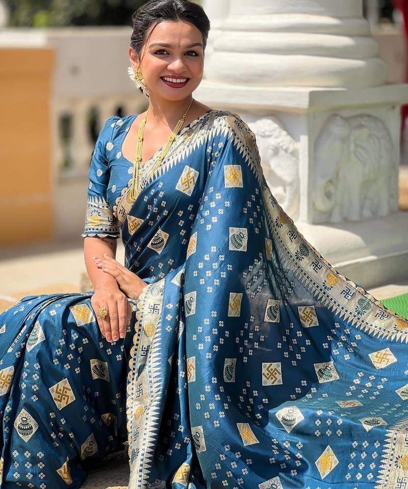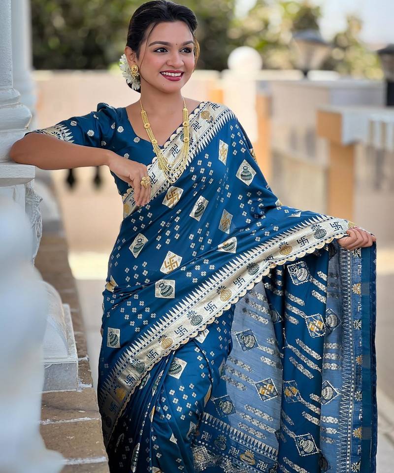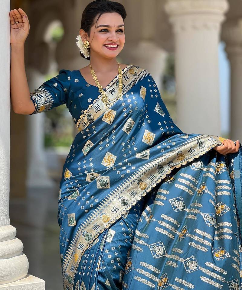 | Product Name | Turquoise Elegant Art Silk Woven Saree With Rich Zari Border | |