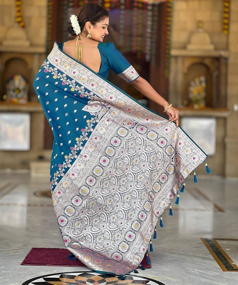 | Product Description | Soft Banarasi Silk Saree With Zari Weaving Meenakari Touchup Design All Over The Saree & Meenakari Weawing Rich Pallu With Meenakari Weawing Border & Tessels Attached At Pallu End. Blouse : Soft Silk Weawing Blouse Piece |