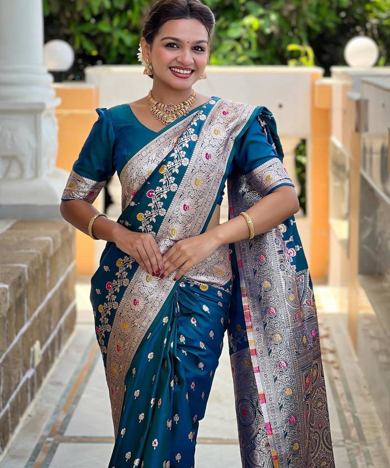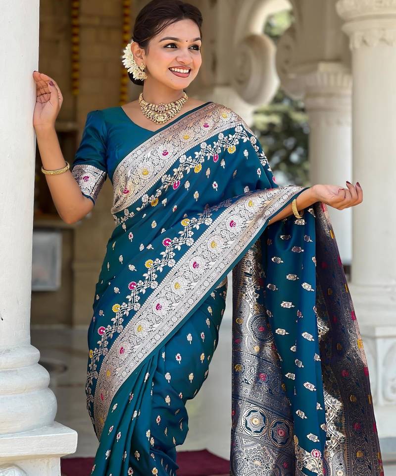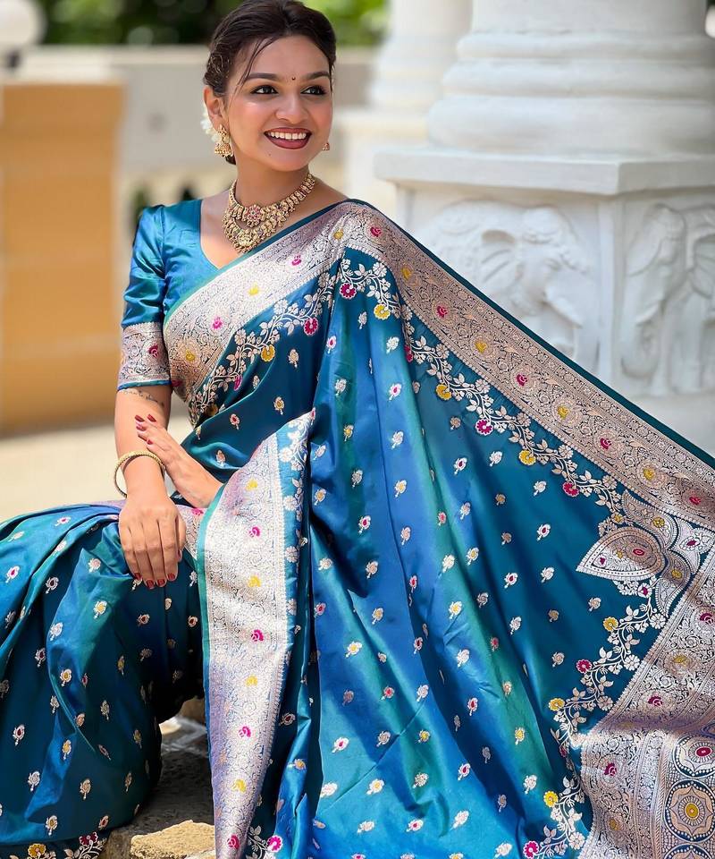 | Product Name | Turquoise Elegant Art Silk Woven Saree With Rich Zari Border | |