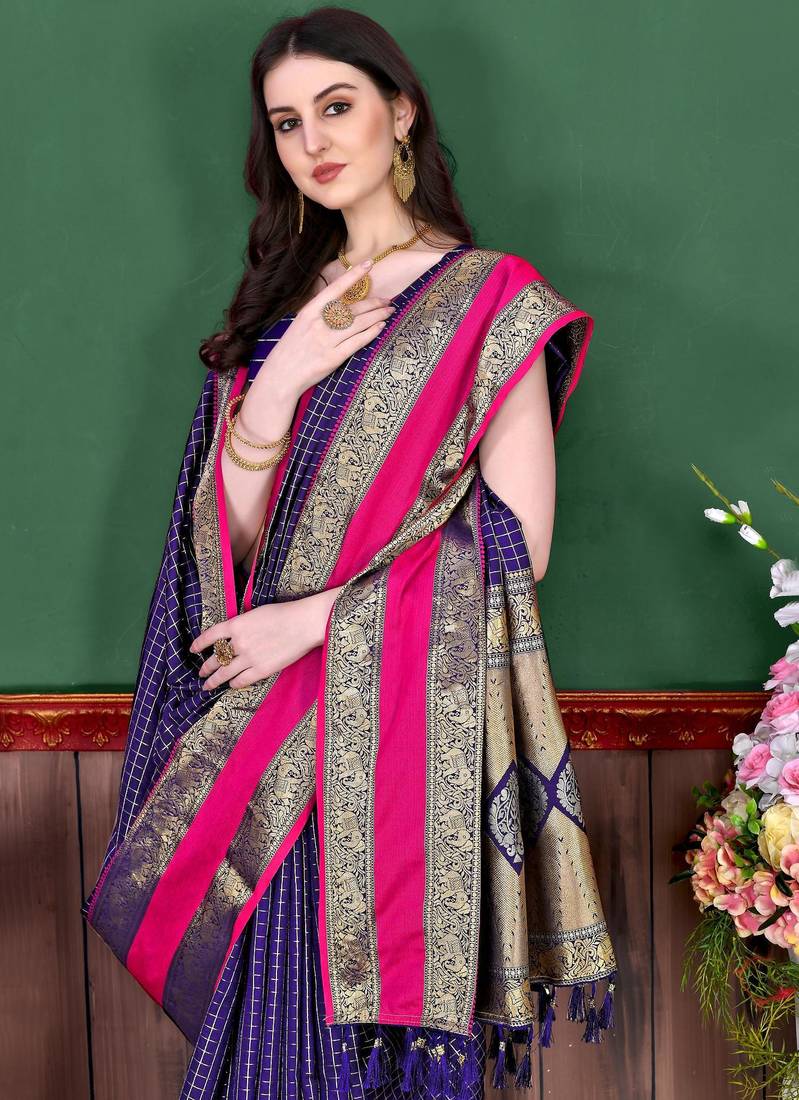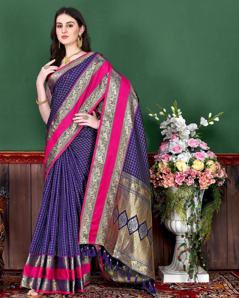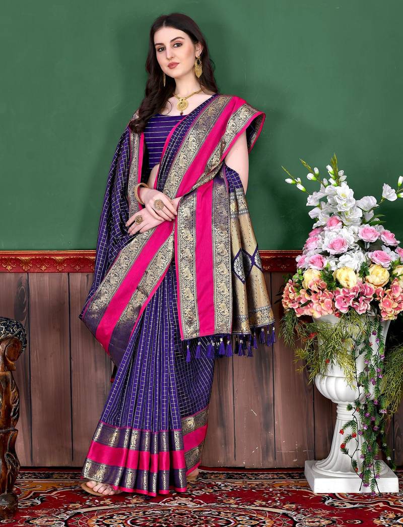 | Product Name | Violet Elegant Art Silk Woven Saree With Rich Zari Border | |