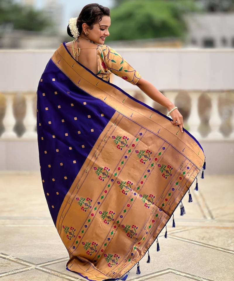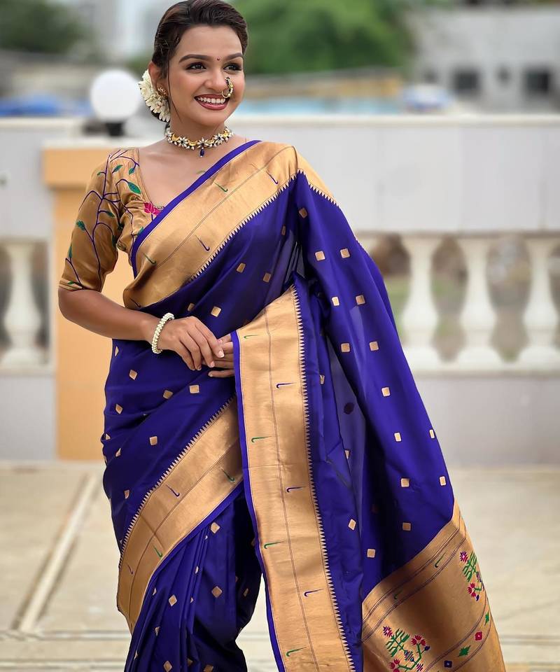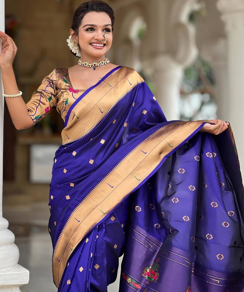 | Product Description | Soft Paithani Silk Saree With Zari Weawing Motifs Design And Meenakari Weawing Rich Pallu With Meenakari Weawing Double Munia Border & Tassels Attached At Pallu End. Blouse : Enrich Silk Weawing Blouse Piece With Sleeve Border , |