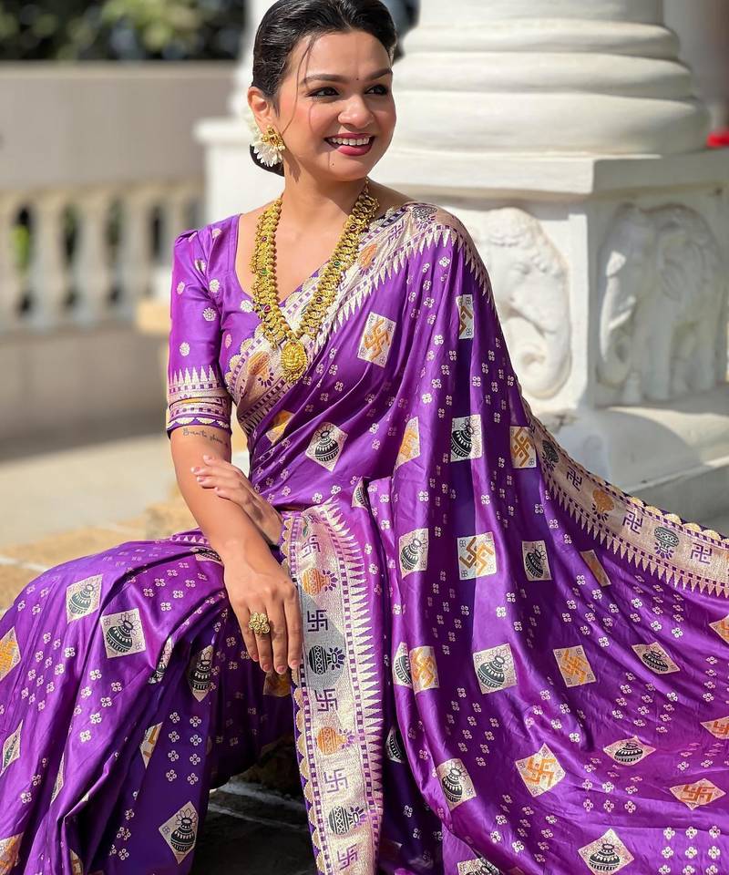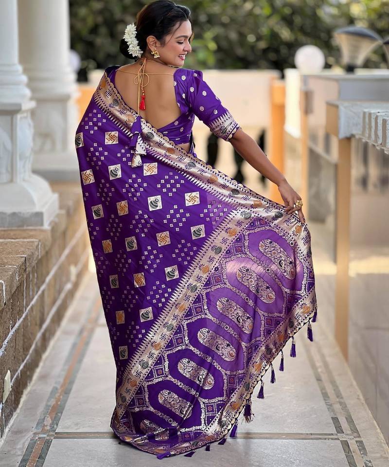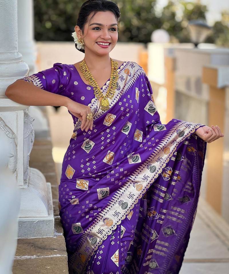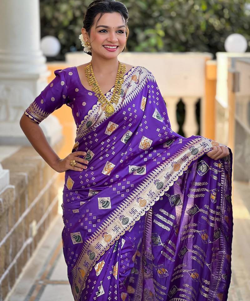 | Product Name | Violet Elegant Art Silk Woven Saree With Rich Zari Border | |