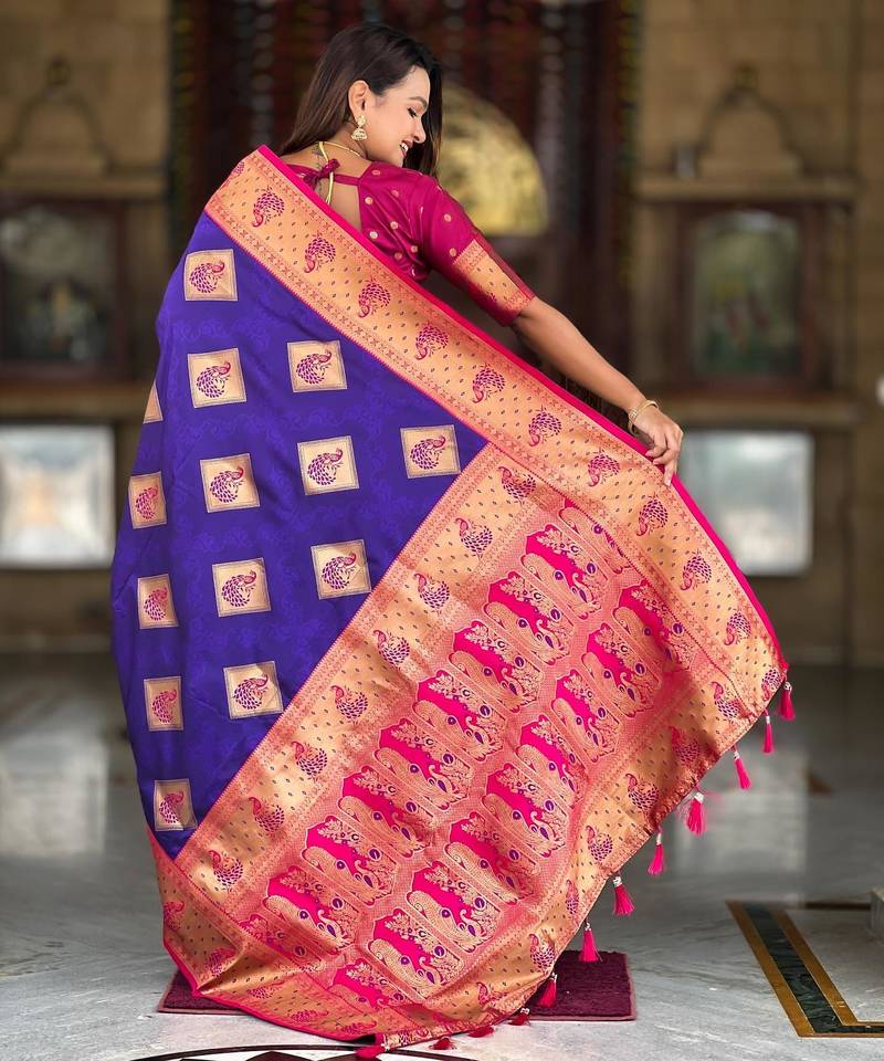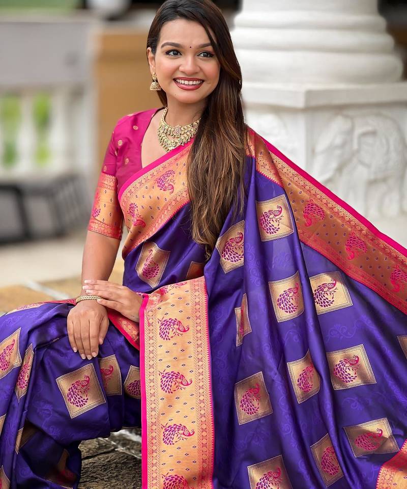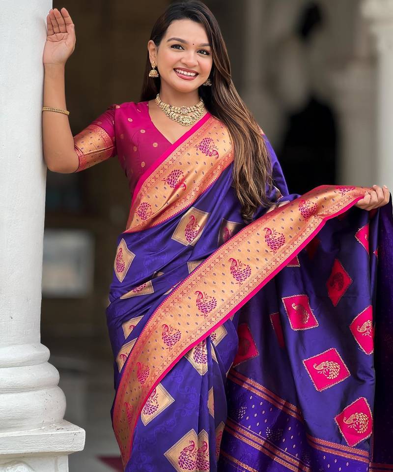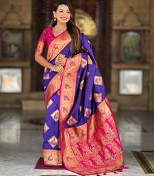 Violet elegant art silk woven saree with rich zari border