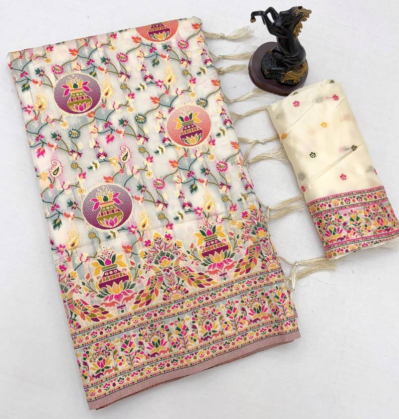 | Product Name | White Pashmina Silk Saree With Kashmiri Meenakari Weaving & Rich Tassel Pallu | |
