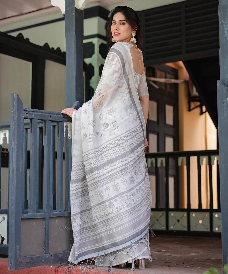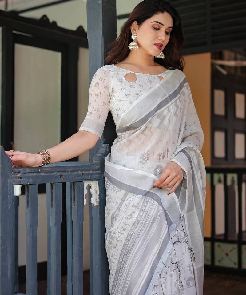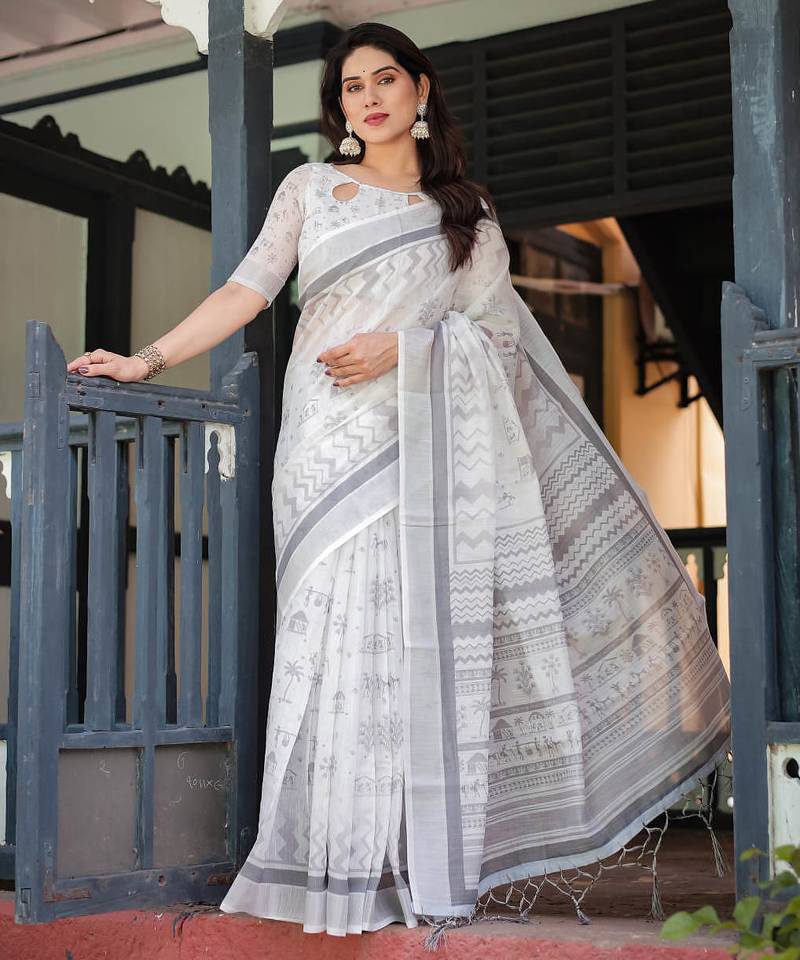 | Product Name | White Printed Art Silk Designer Pallu Saree | |