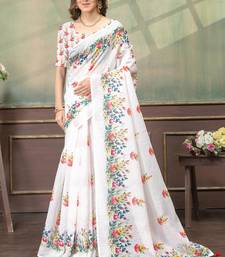 White printed art silk designer pallu saree