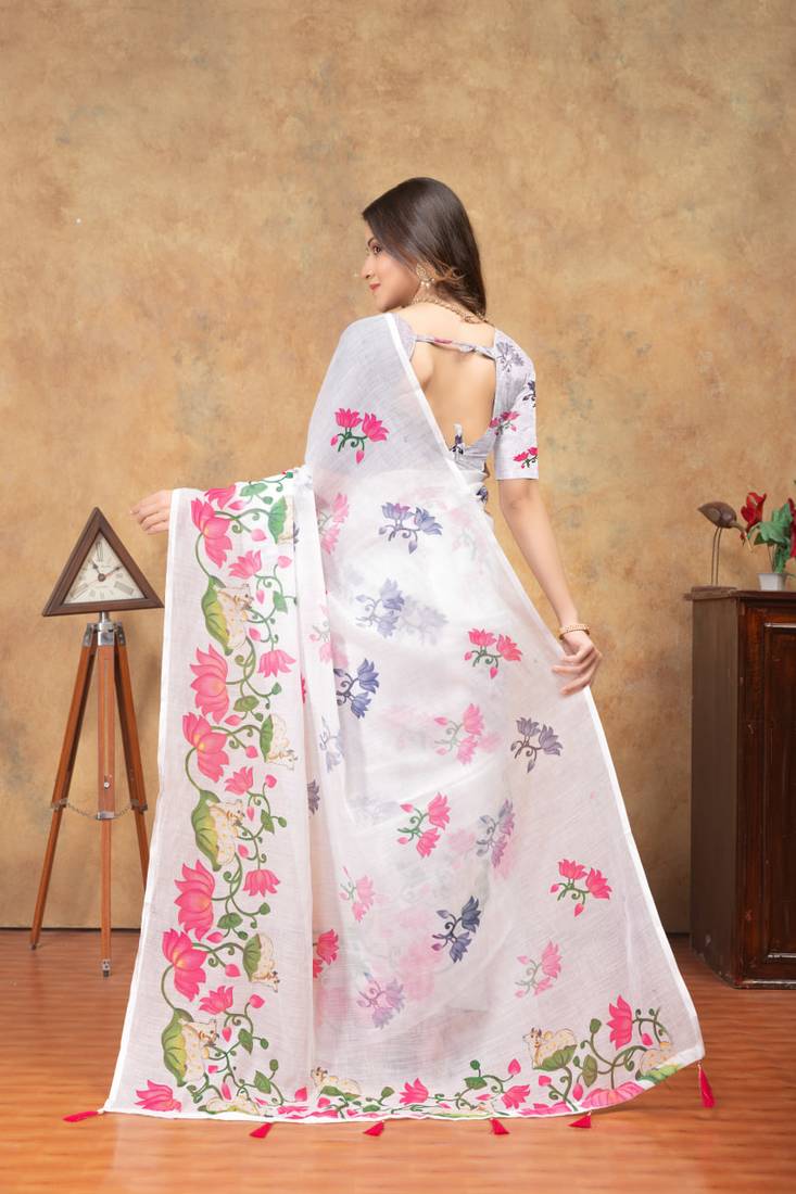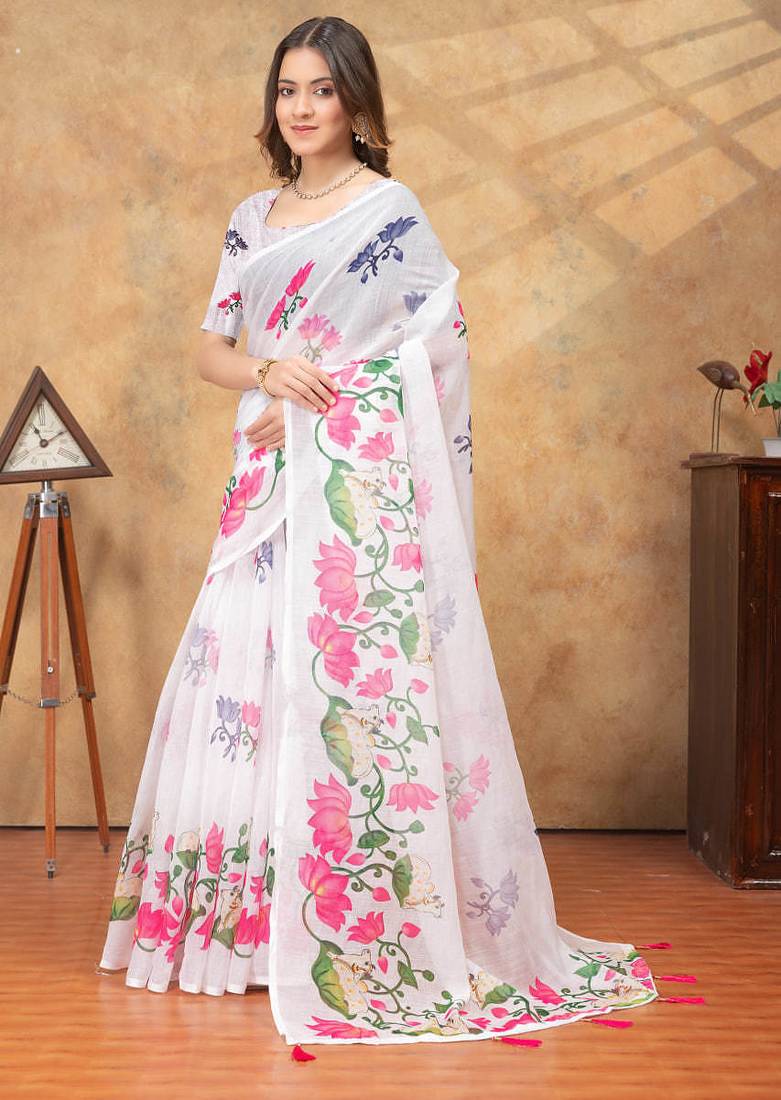| Product Name | White Printed Art Silk Designer Pallu Saree | |