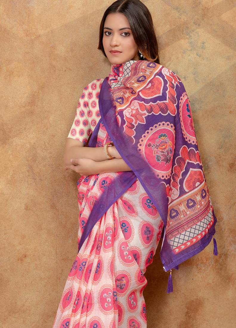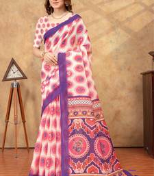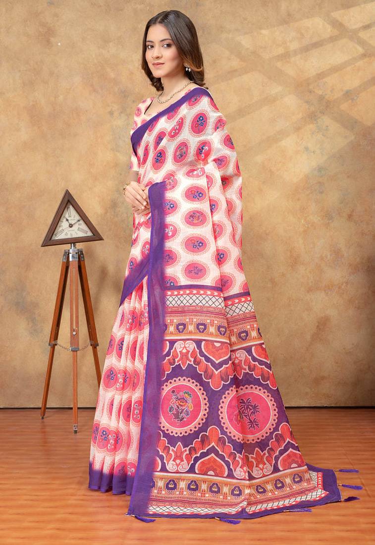 White printed art silk designer pallu saree