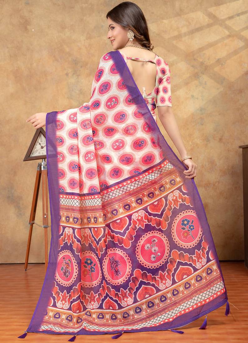 | Product Name | White Printed Art Silk Designer Pallu Saree | |