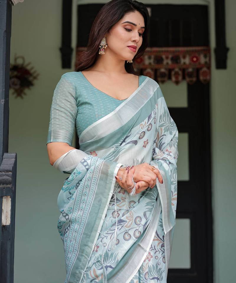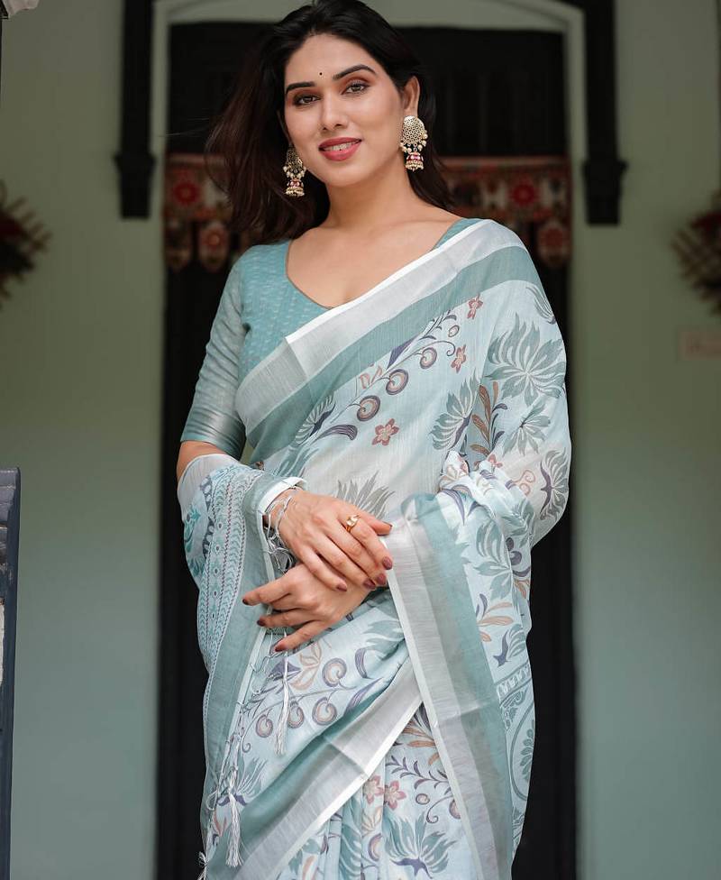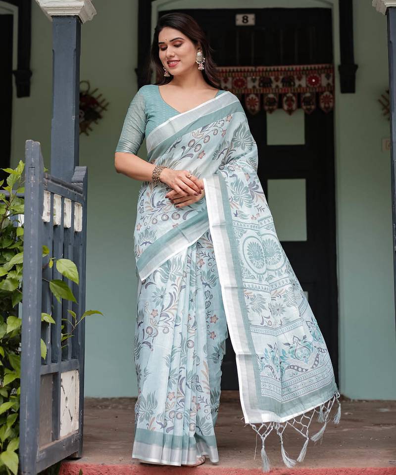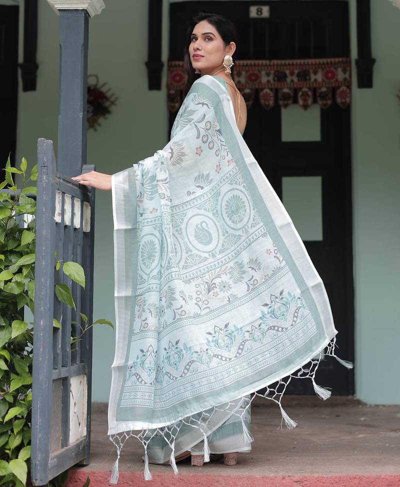 | Product Name | White Printed Art Silk Designer Pallu Saree | |