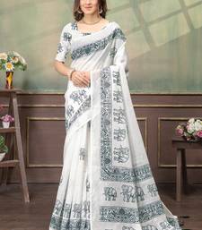 White printed art silk designer pallu saree