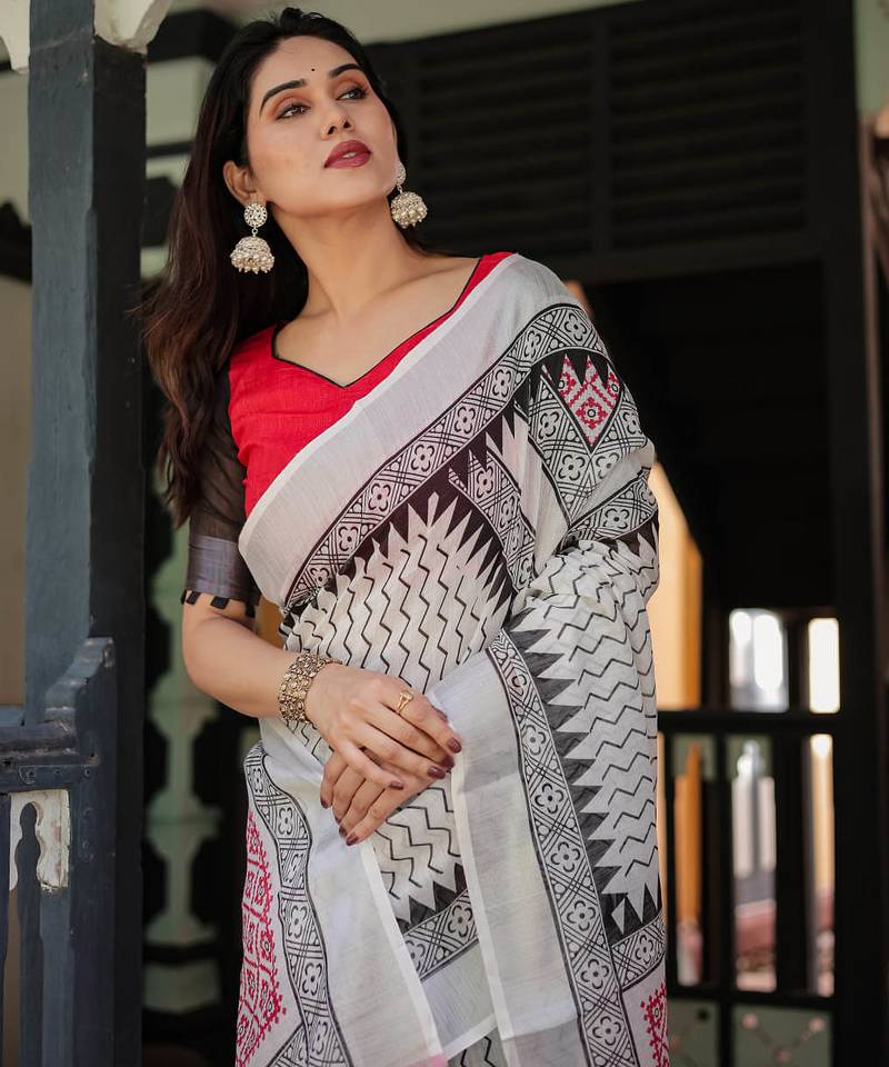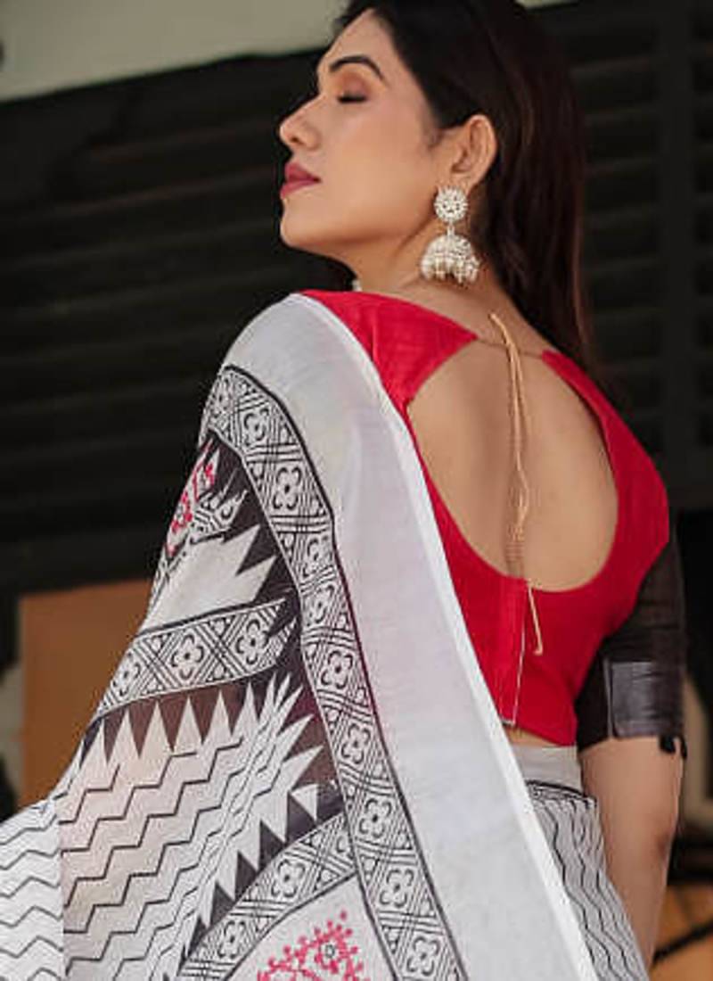 | Product Name | White Printed Art Silk Designer Pallu Saree | |