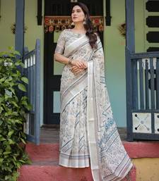 White printed art silk designer pallu saree