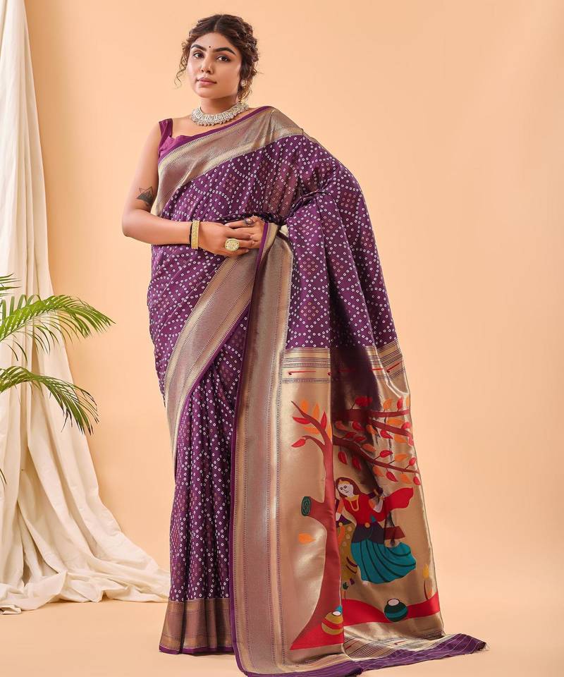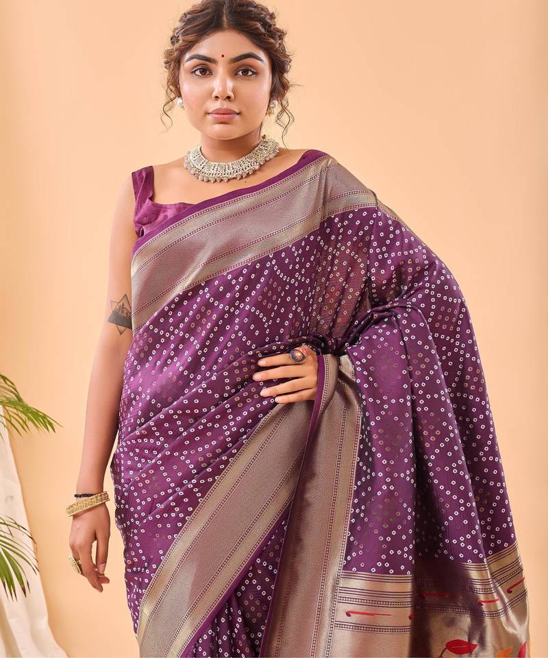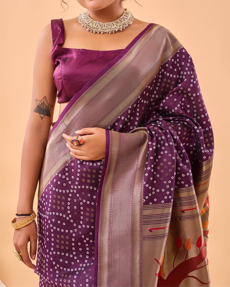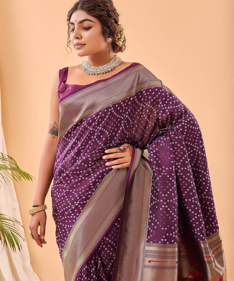 Wine art silk woven saree