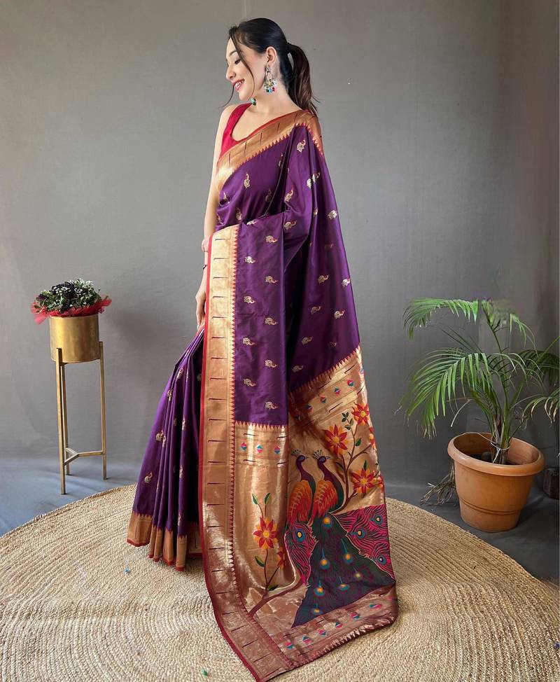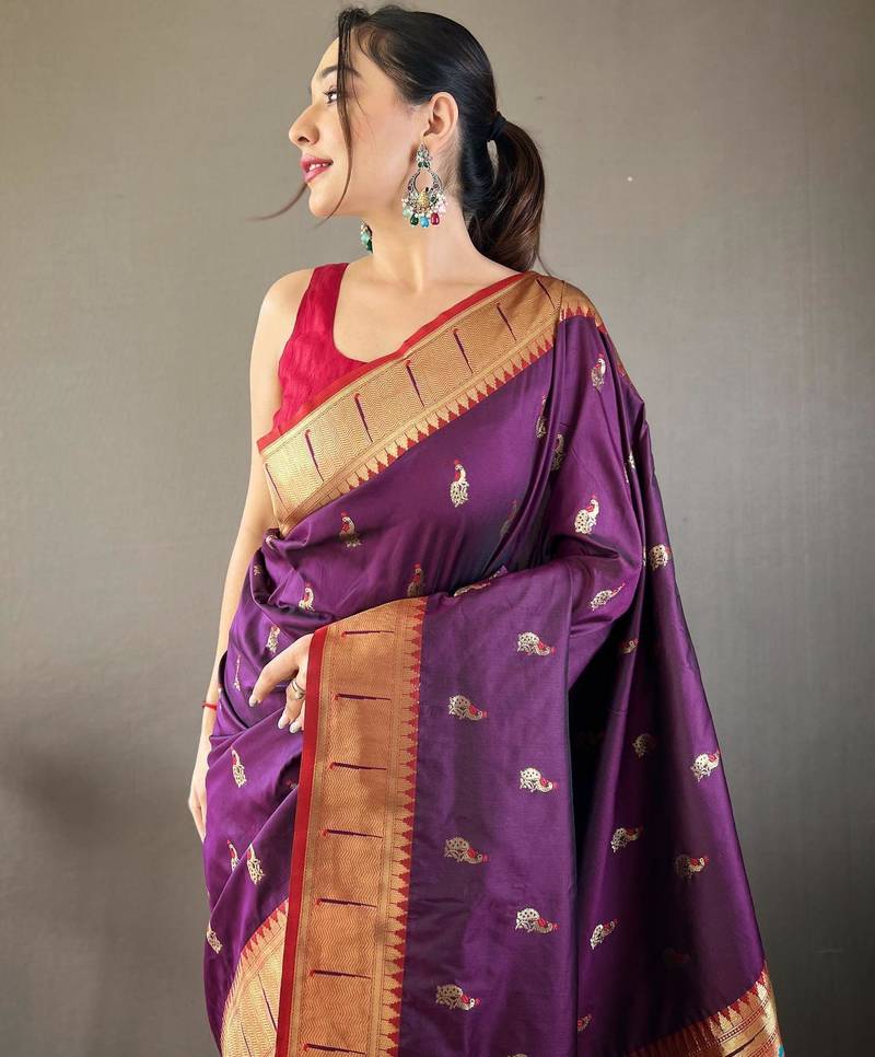 Wine art silk woven saree