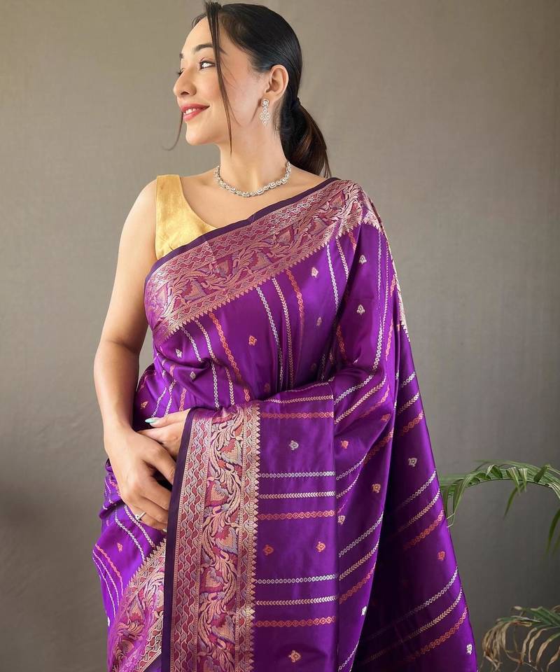 Wine art silk woven saree