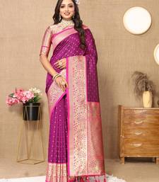 Wine elegant art silk woven saree with rich zari border