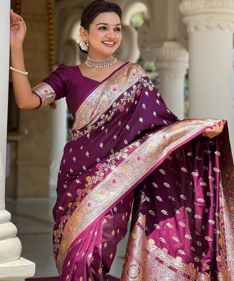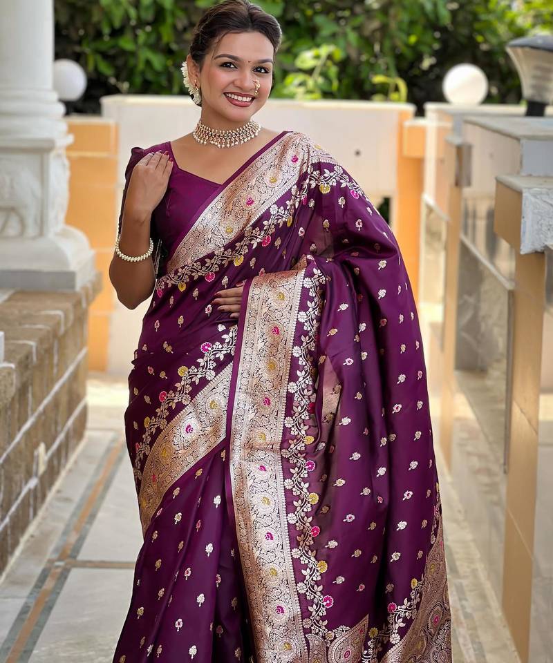 | Product Name | Wine Elegant Art Silk Woven Saree With Rich Zari Border | |