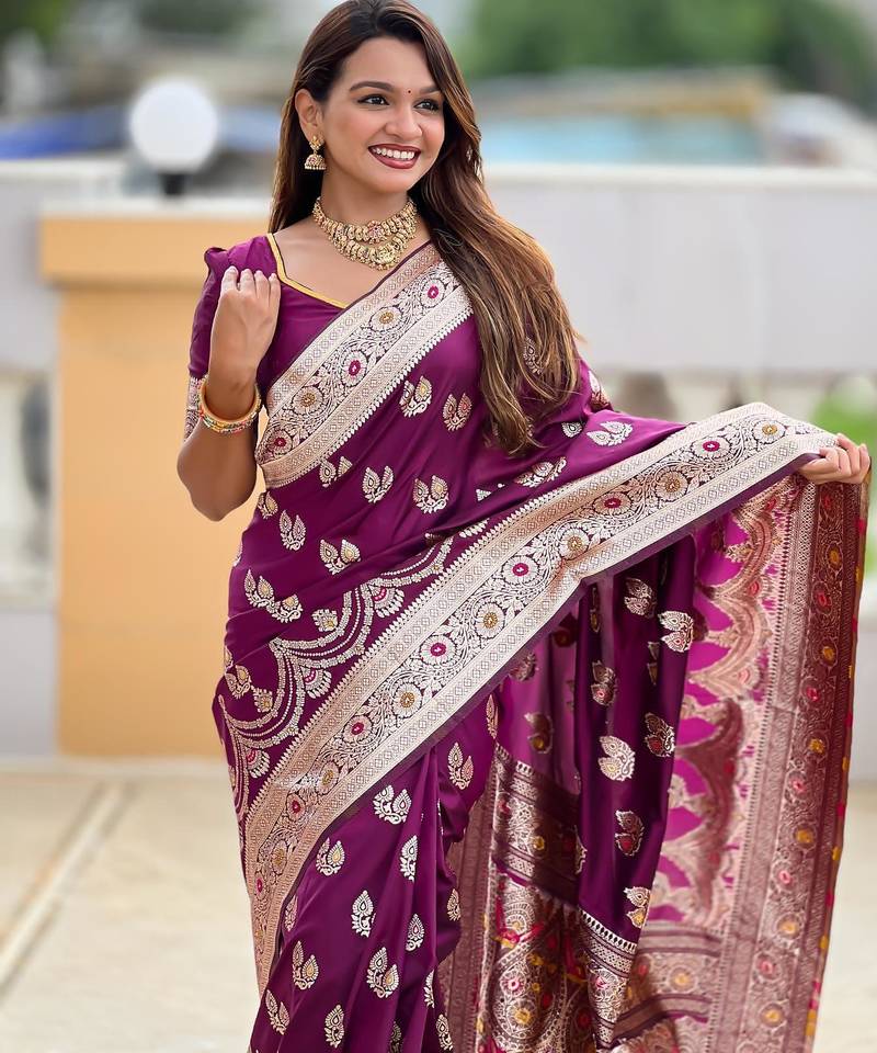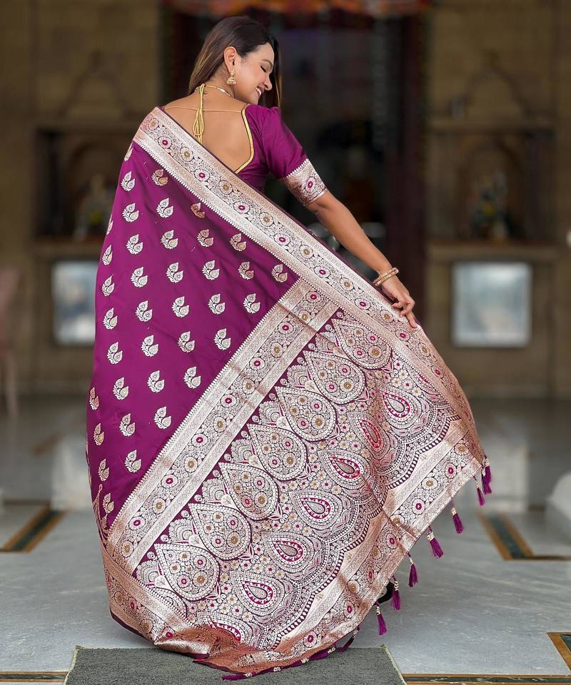 | Product Description | Soft Banarasi Silk Saree With Zari Weaving Meenakari Touchup Design All Over The Saree & Meenakari Weawing Rich Pallu With Meenakari Weawing Border & Tessels Attached At Pallu End. Blouse : Soft Silk Weawing Blouse Piece |
