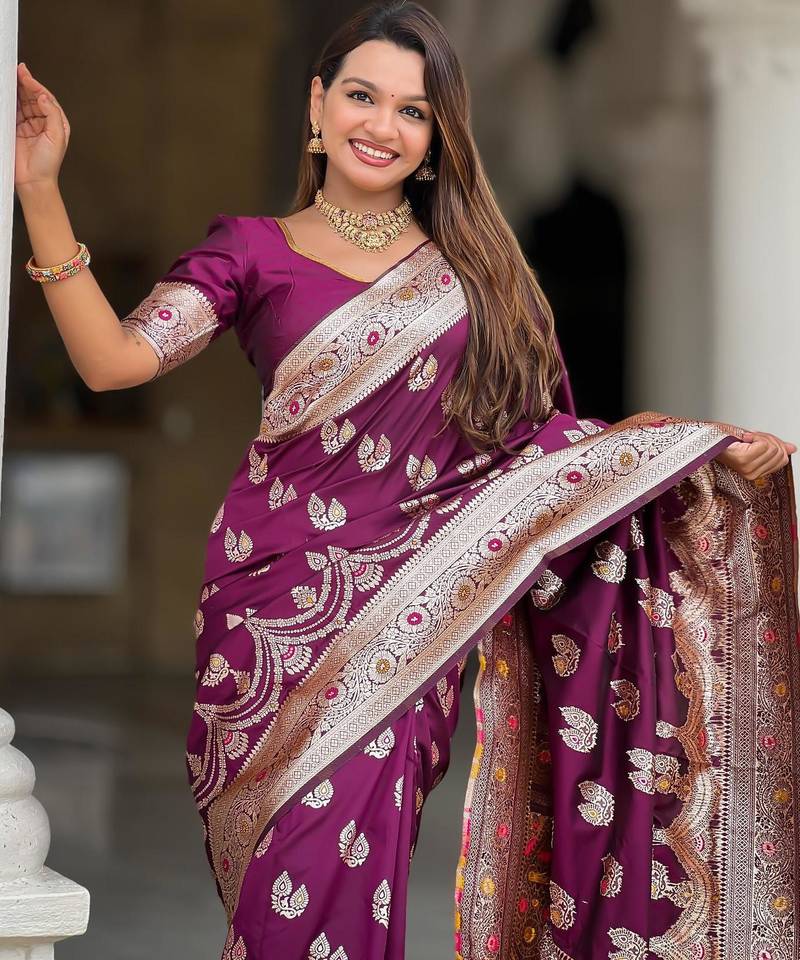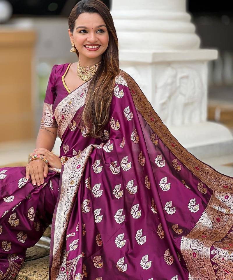 | Product Name | Wine Elegant Art Silk Woven Saree With Rich Zari Border | |