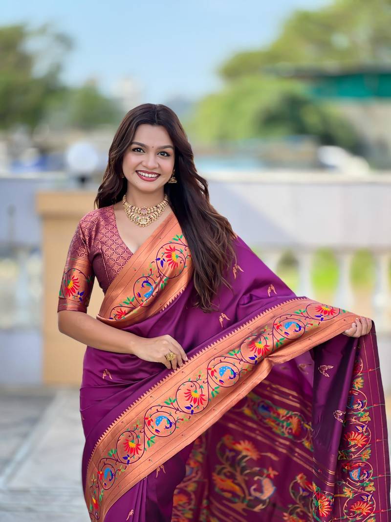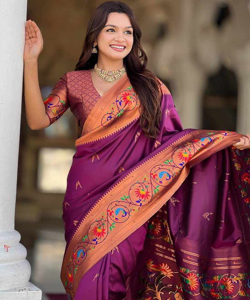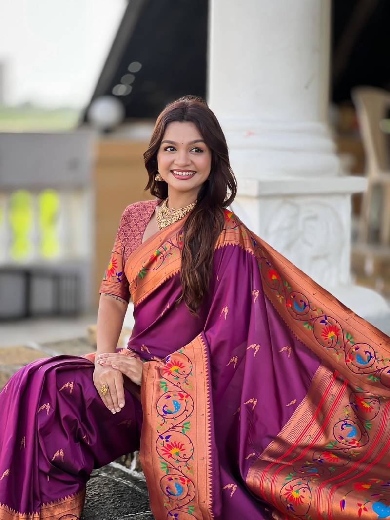 | Product Description | Soft Paithani Silk Saree With Zari Weawing Meenakari Motifs Design And Meenakari Weawing Rich Pallu With Meenakari Weawing Border & Tassels Attached At Pallu End. Blouse : Enrich Silk Weawing Contrast Blouse Piece With Sleeve Border , |