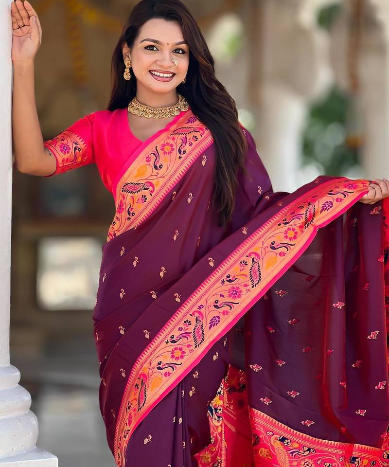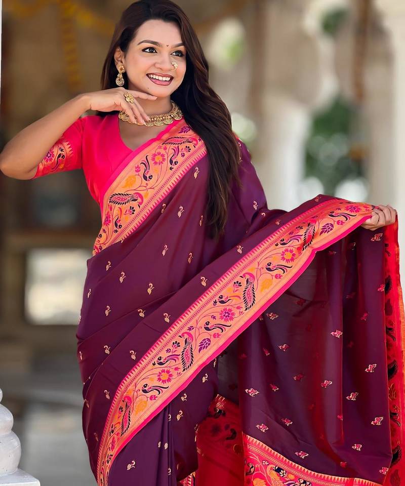 | Product Name | Wine Elegant Art Silk Woven Saree With Rich Zari Border | |