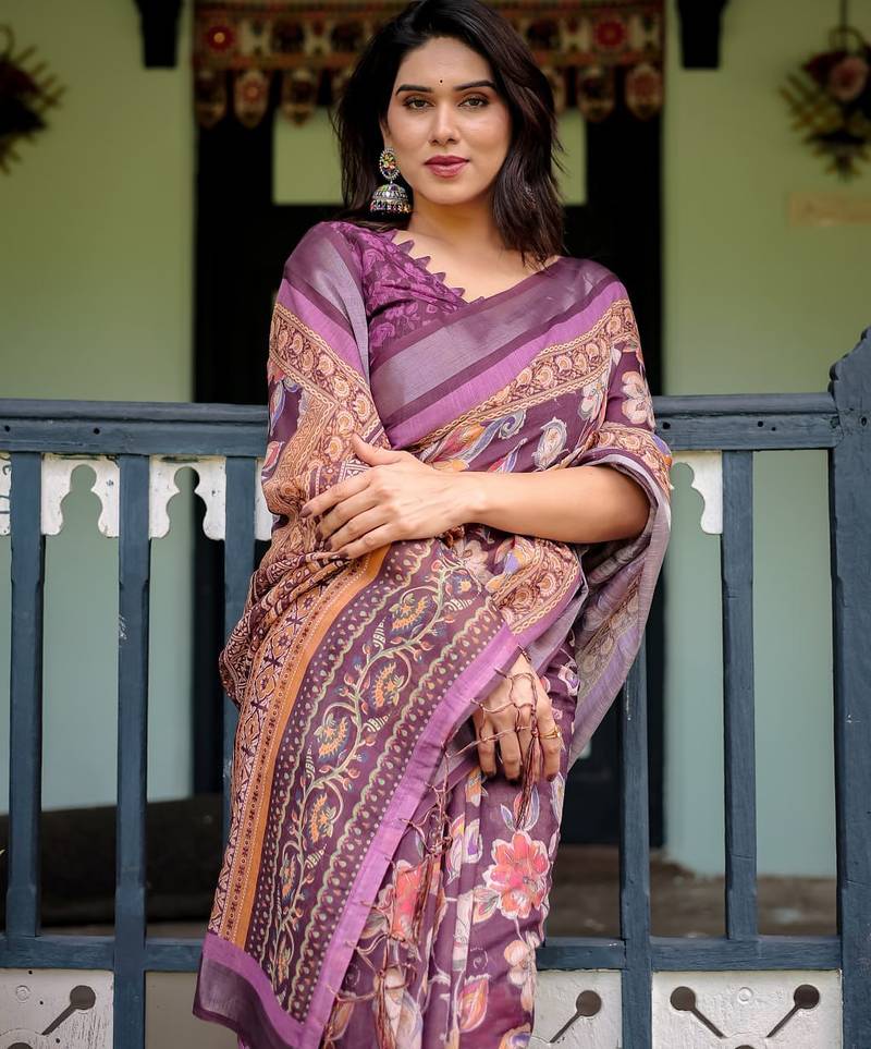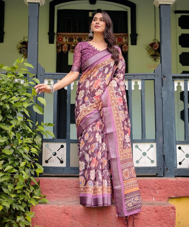 | Product Name | Wine Printed Art Silk Designer Pallu Saree | |
