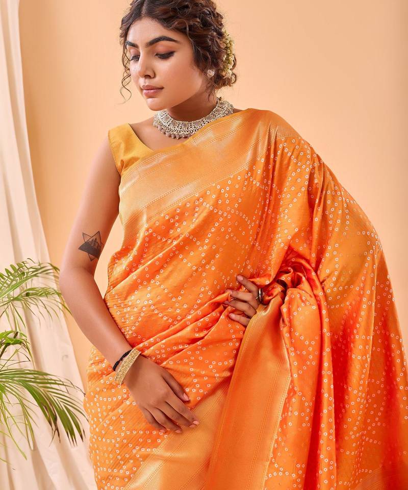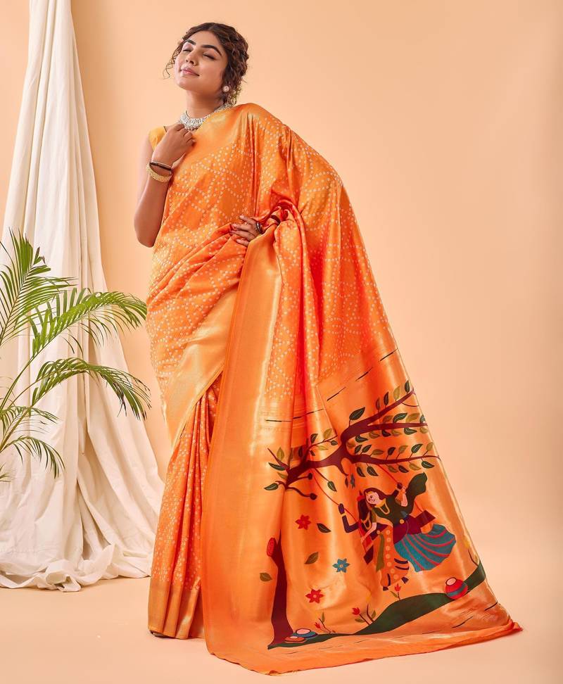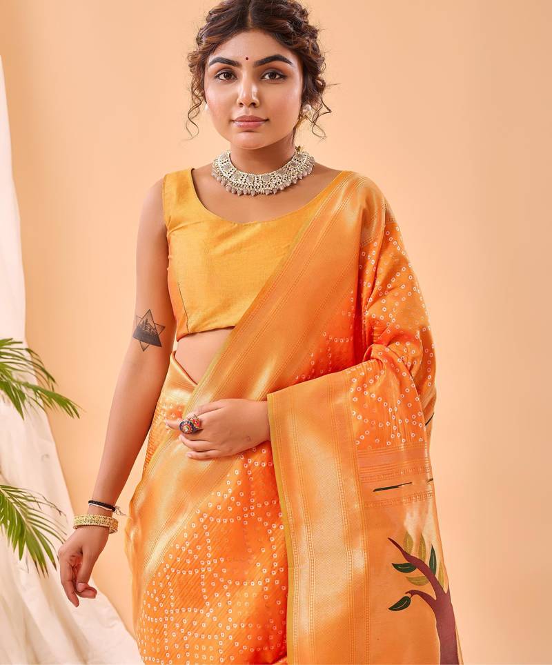 Yellow art silk woven saree