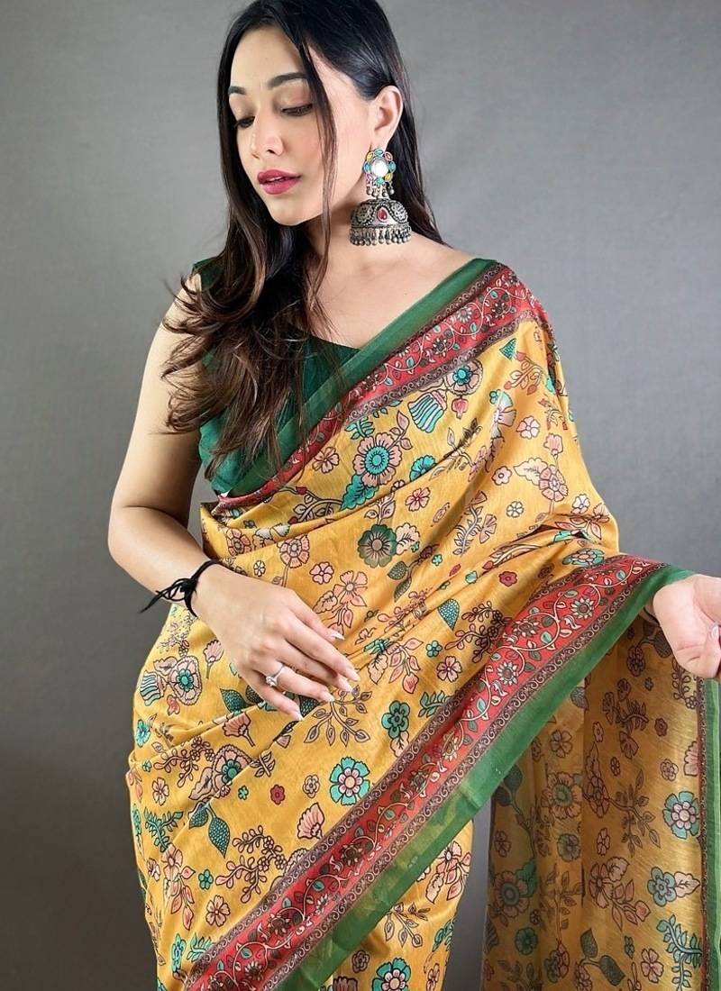 | • | Saree | : | Color- Yellow / Fabric- Art Silk |