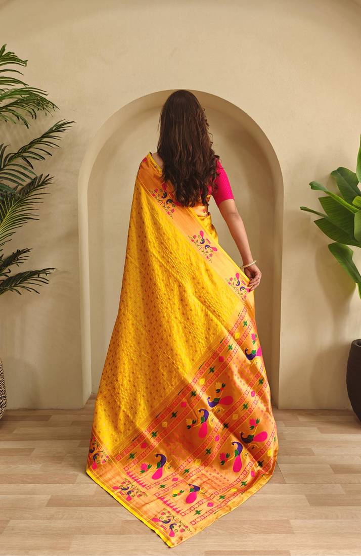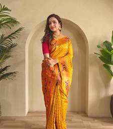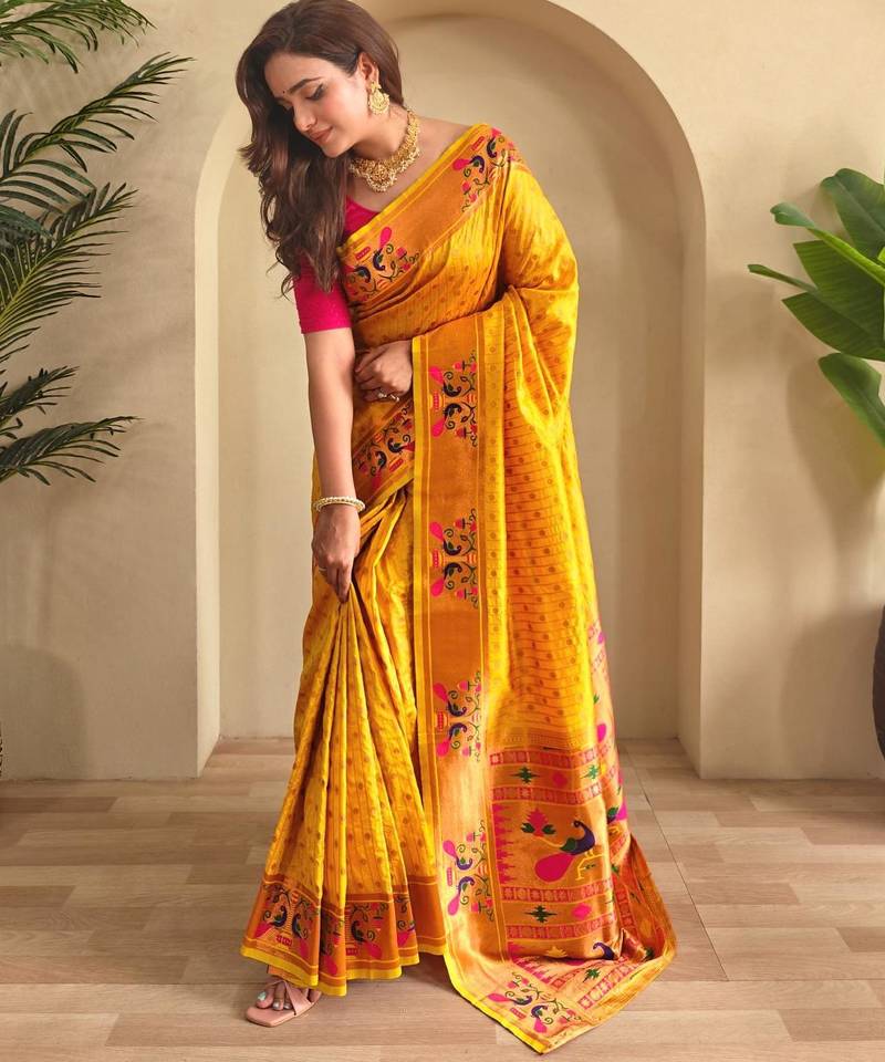 Yellow art silk woven saree