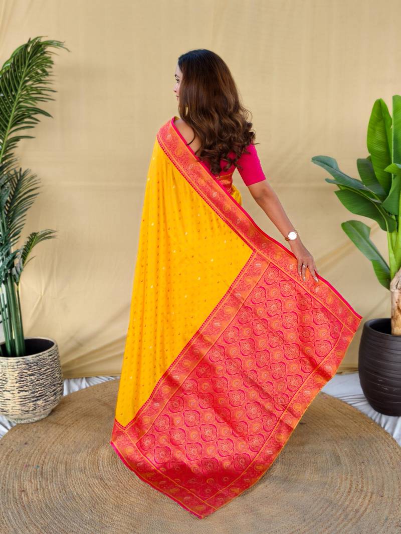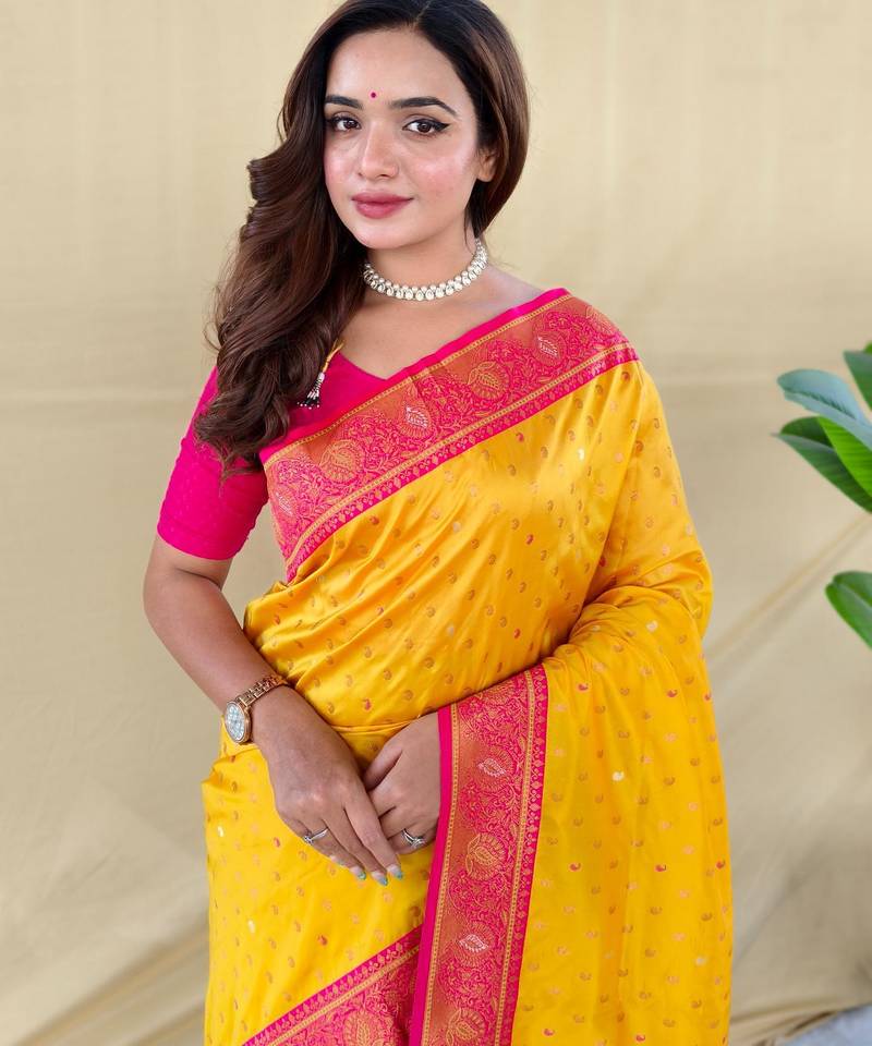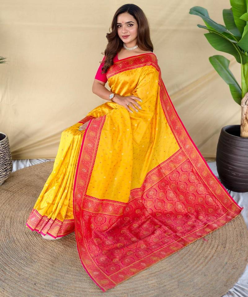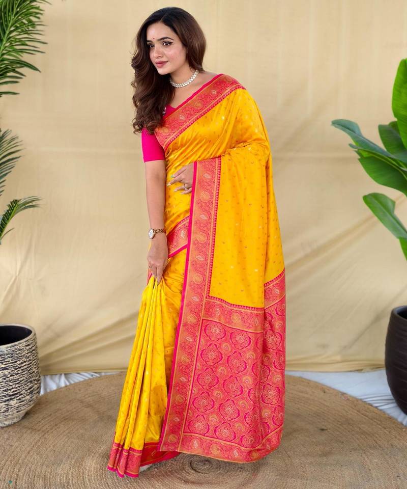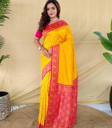 | • | Saree | : | Color- Yellow / Fabric- Art Silk |