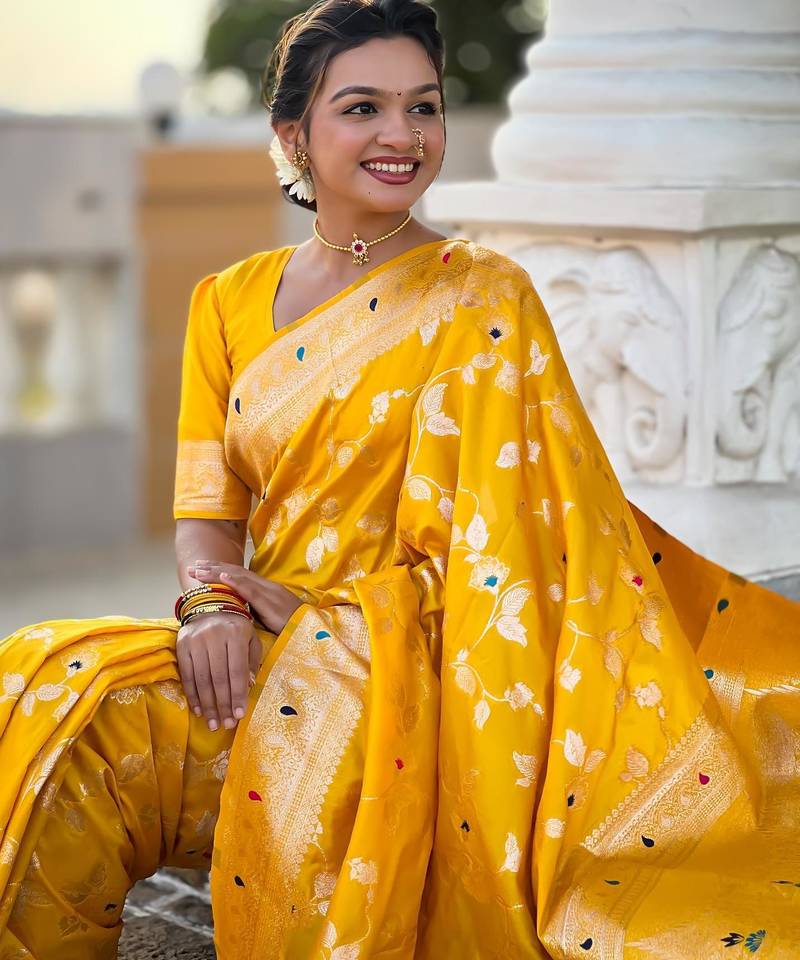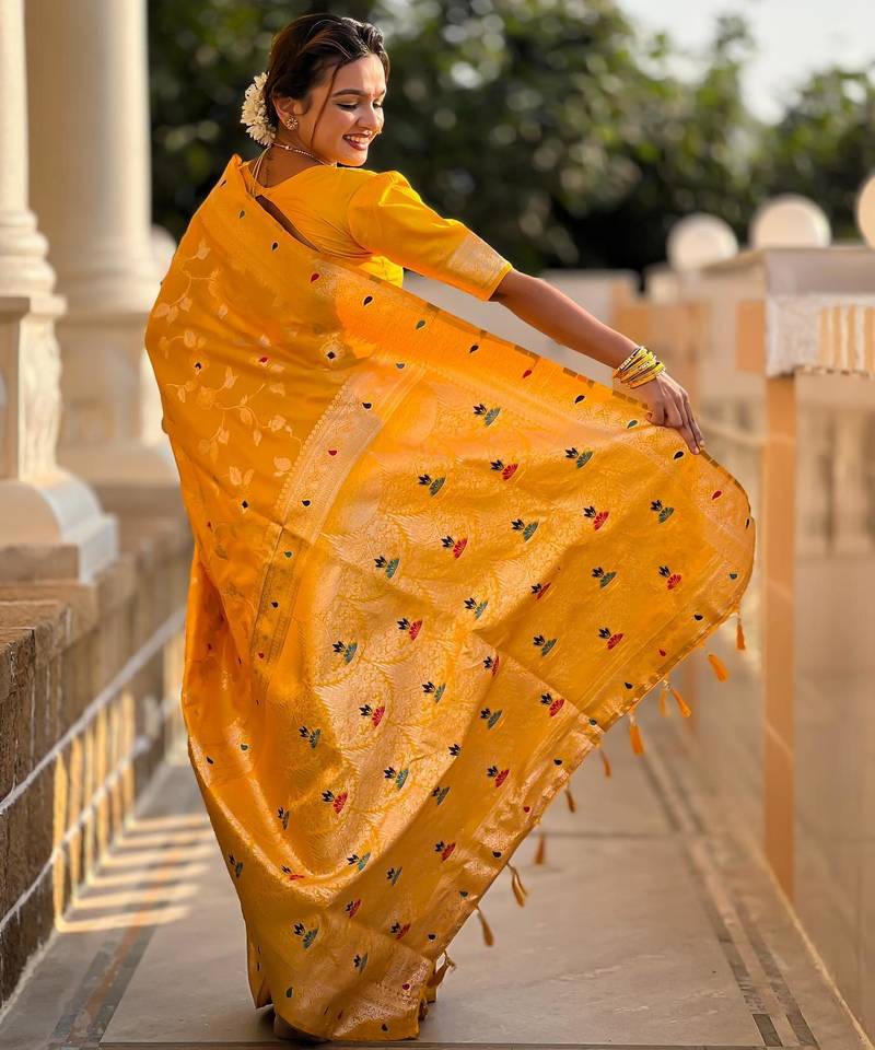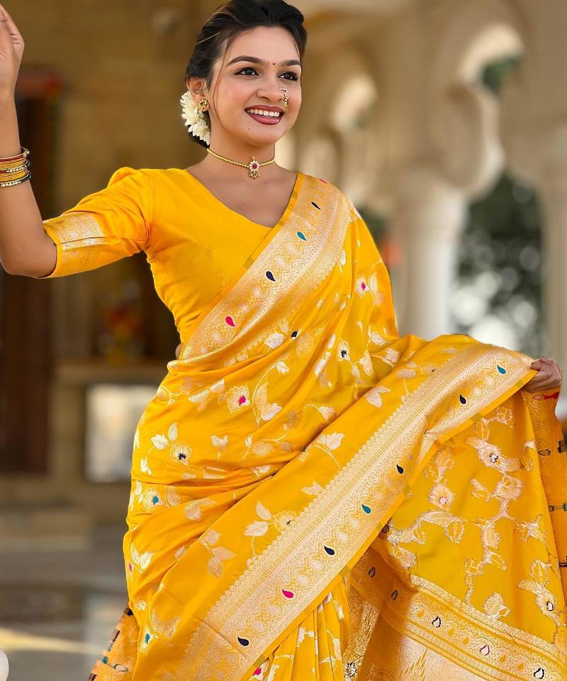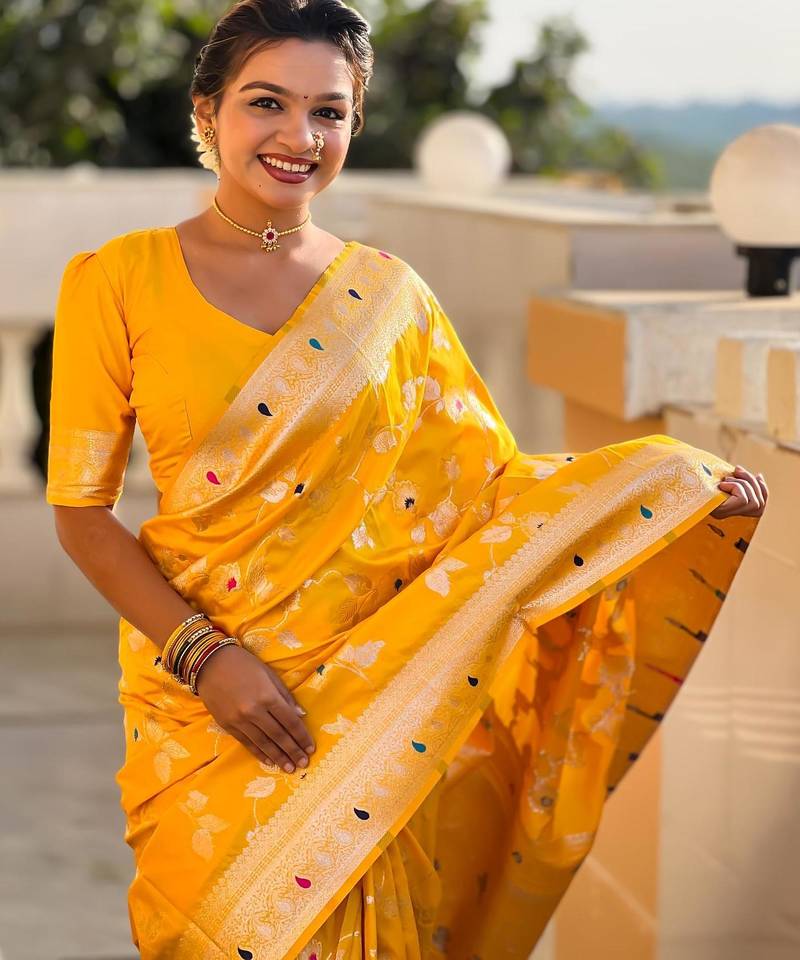 | Product Name | Yellow Elegant Art Silk Woven Saree With Rich Zari Border | |