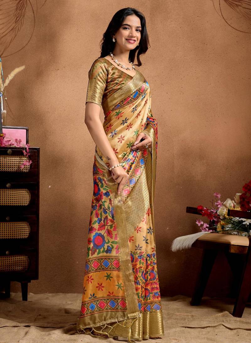 | Product Name | Yellow Printed Art Silk Designer Pallu Saree | |