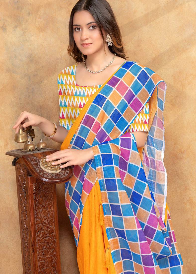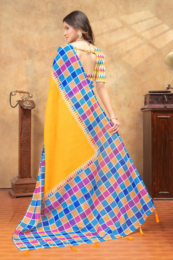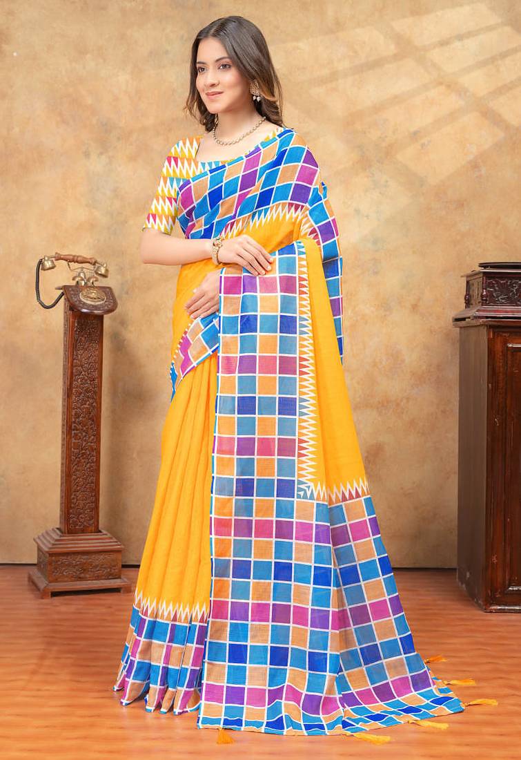 | Product Name | Yellow Printed Art Silk Designer Pallu Saree | |
